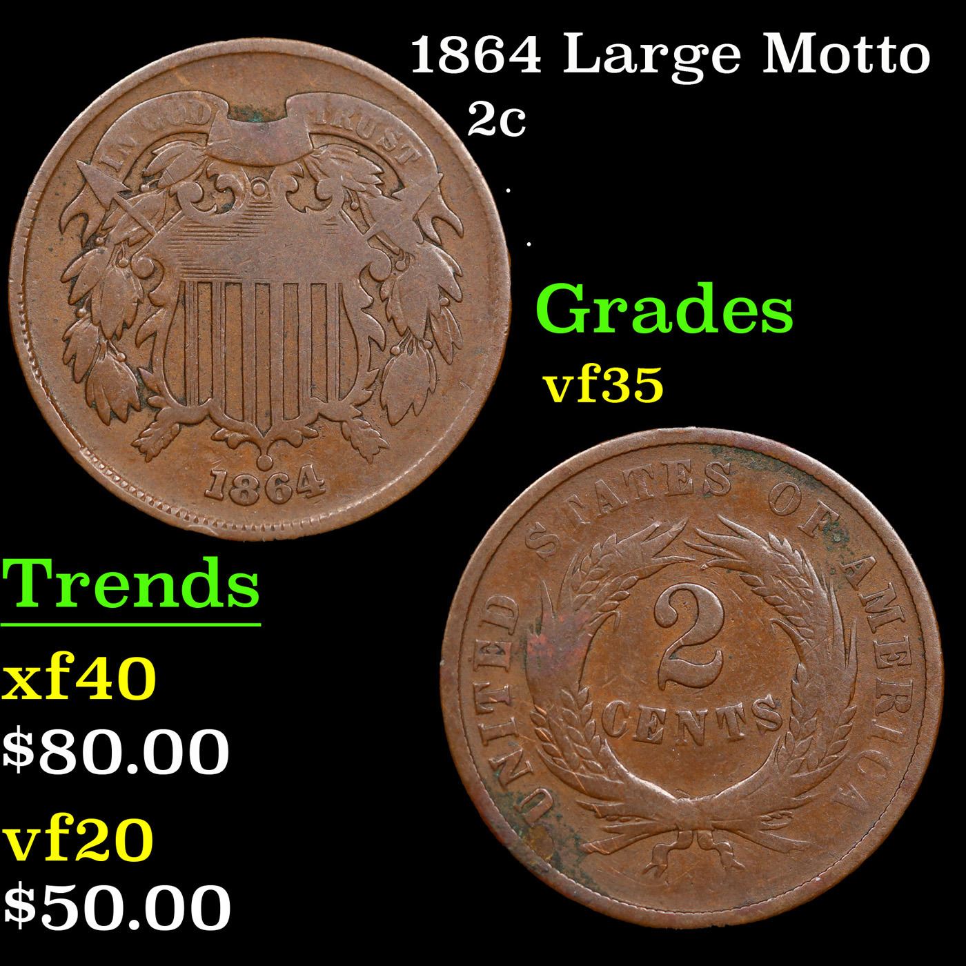 1864 Large Motto Two Cent Piece 2c Grades vf++.