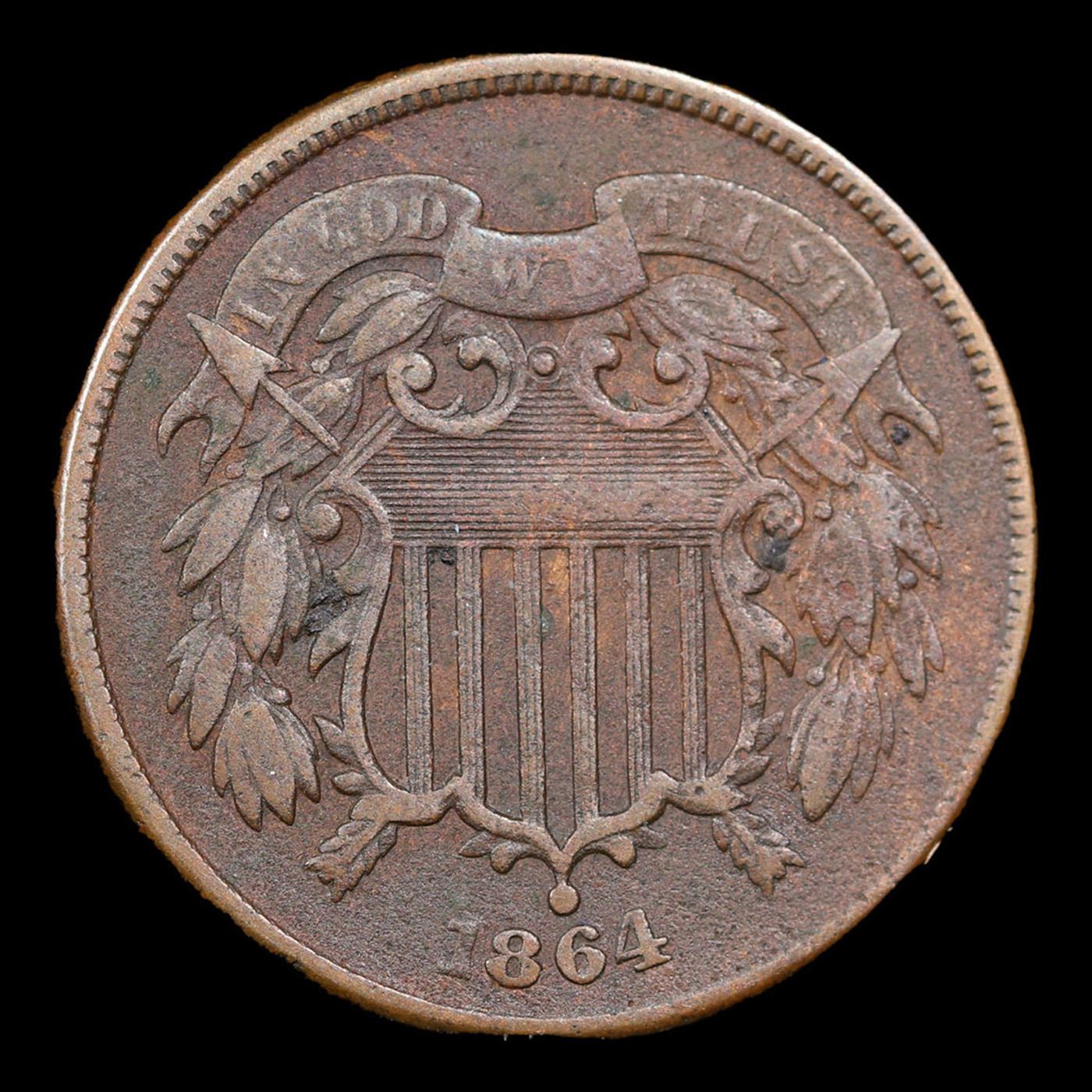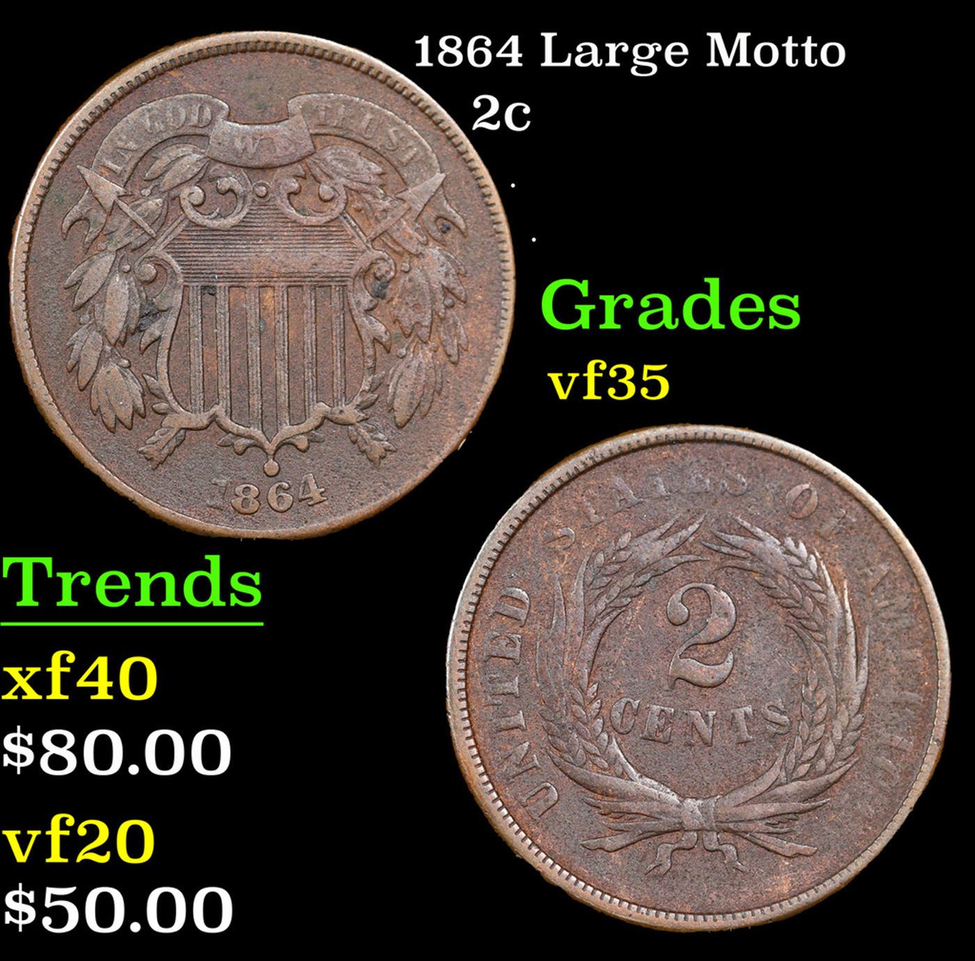 1864 Large Motto Two Cent Piece 2c Grades vf++.