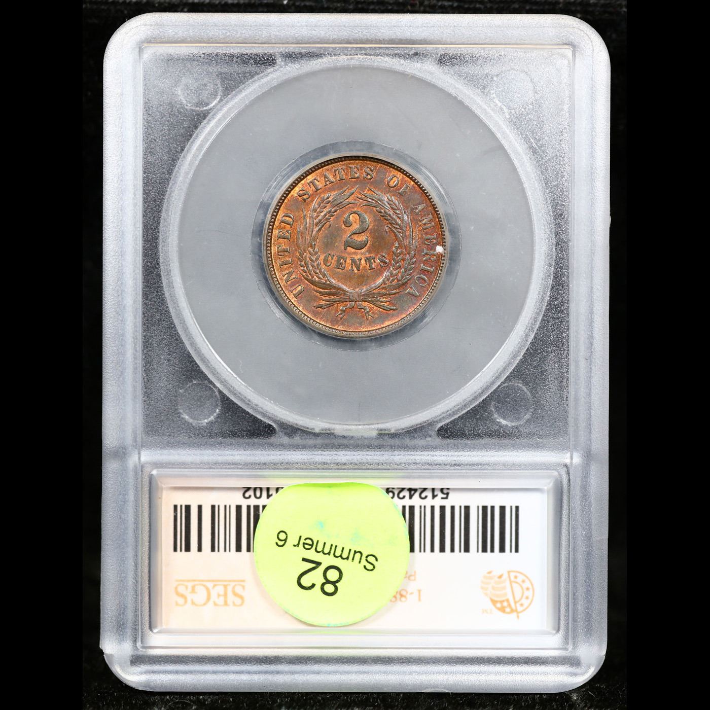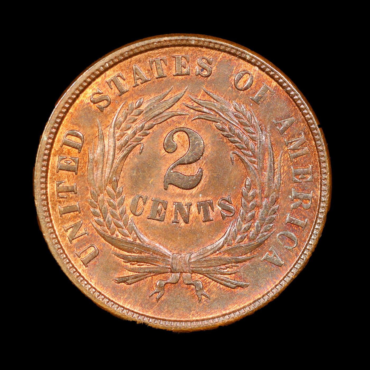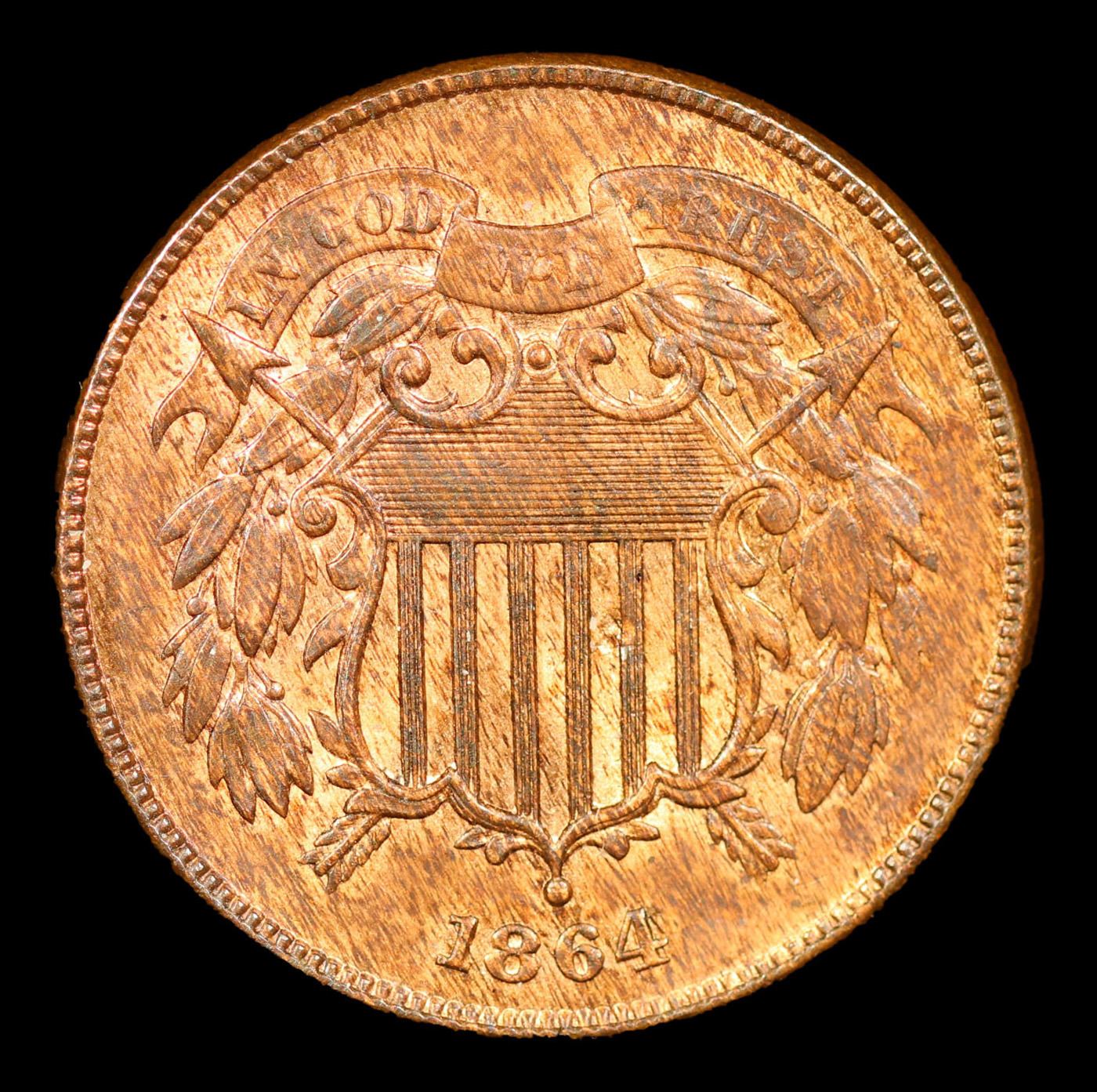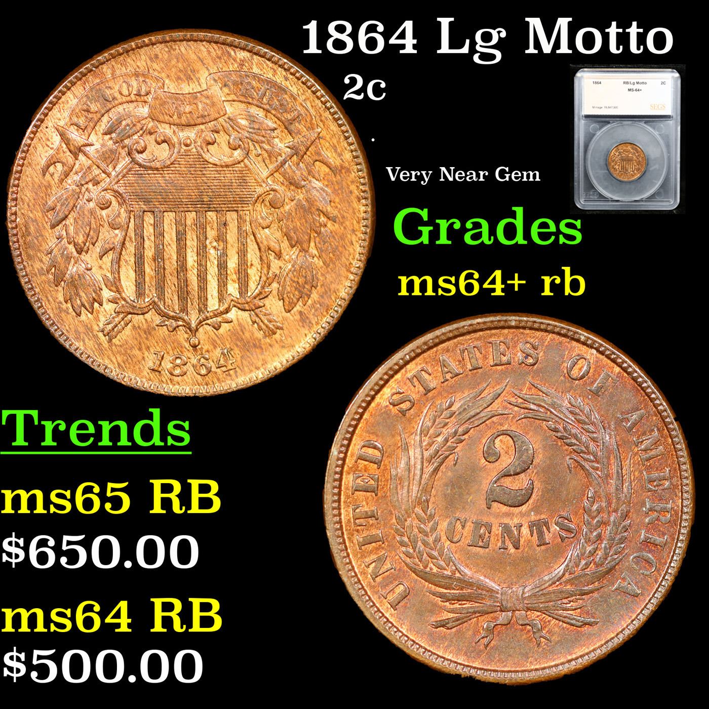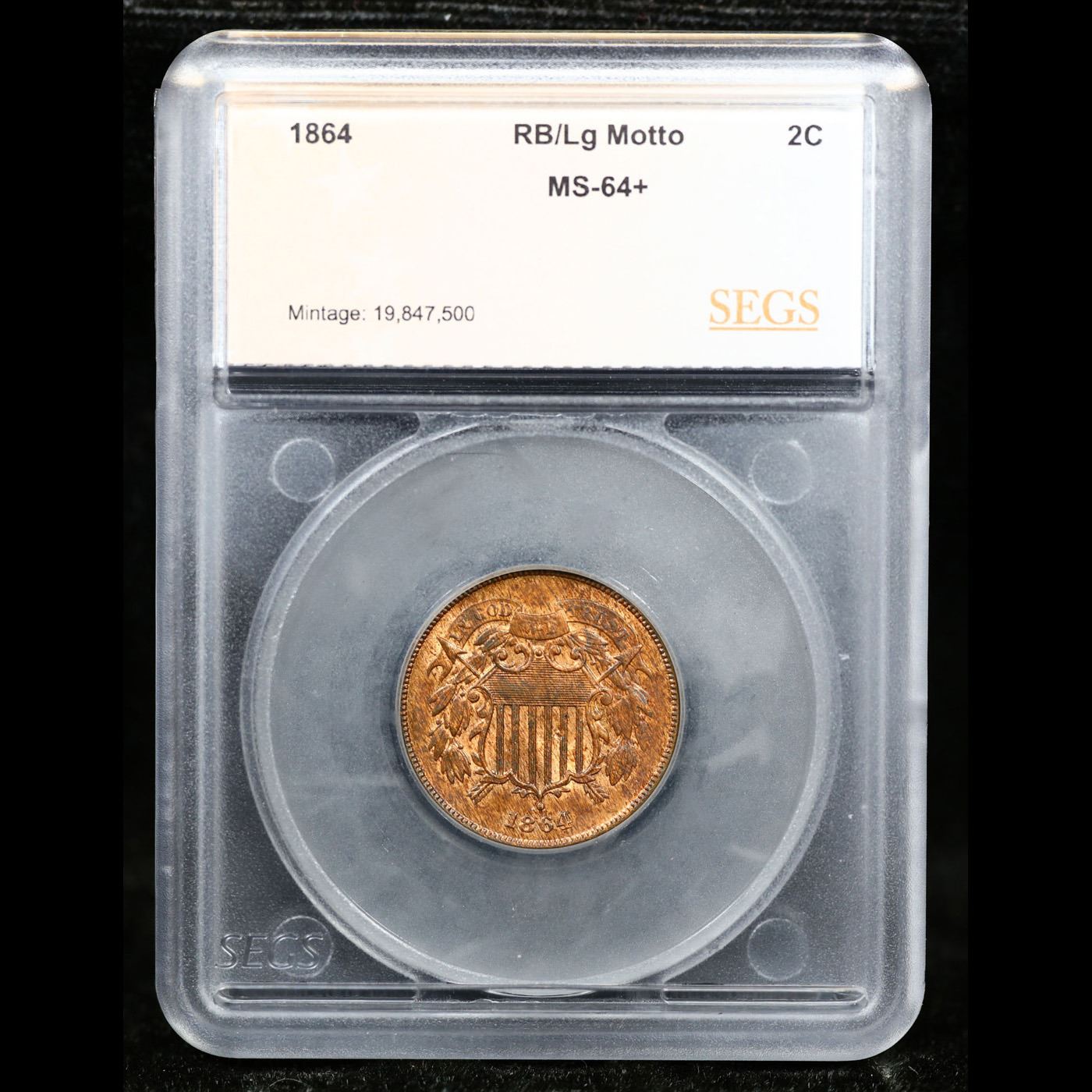 1864 Lg Motto Two Cent Piece 2c Graded ms64+ rb By SEGS.