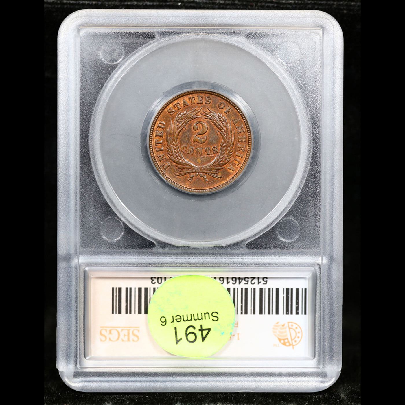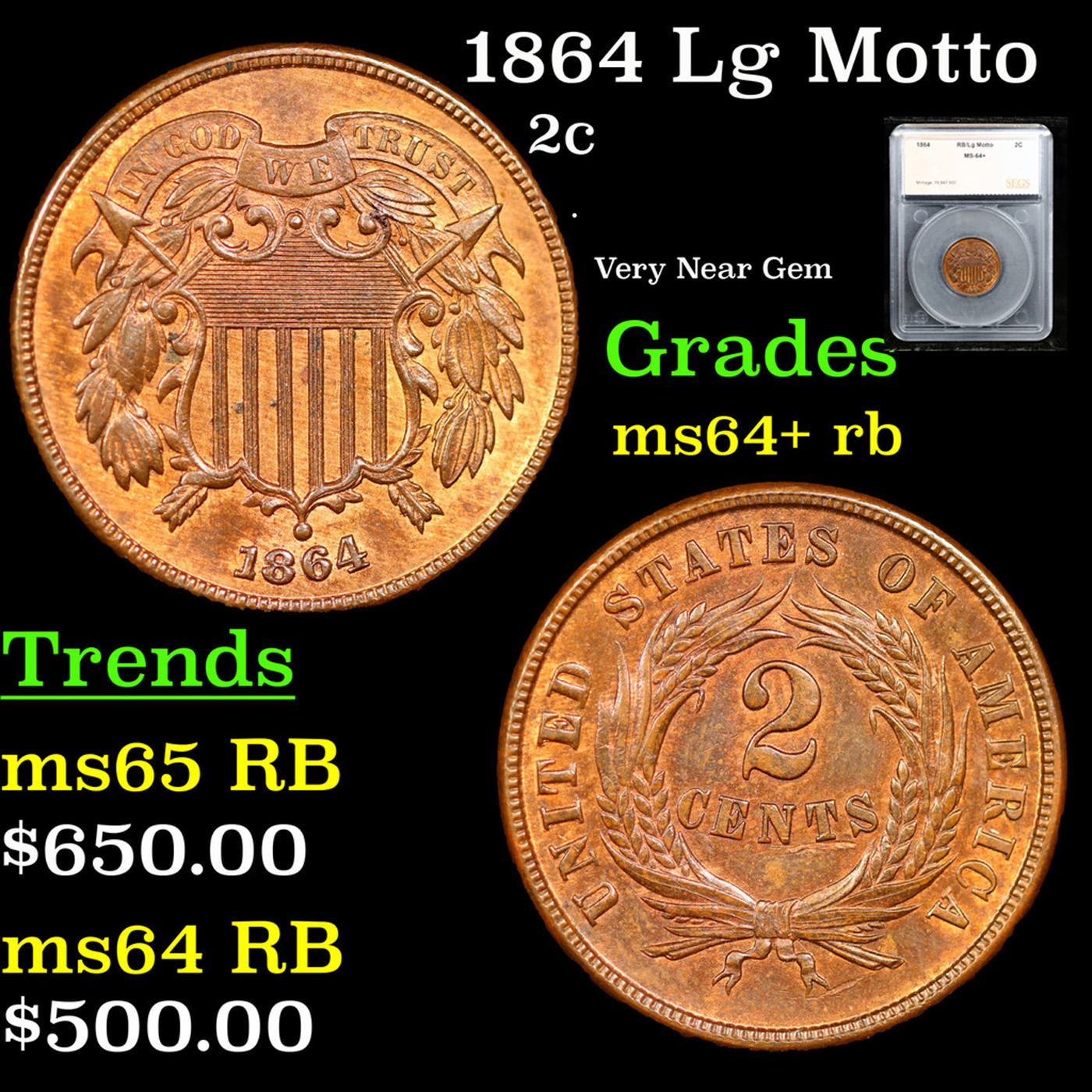 1864 Lg Motto Two Cent Piece 2c Graded ms64+ rb By SEGS.
