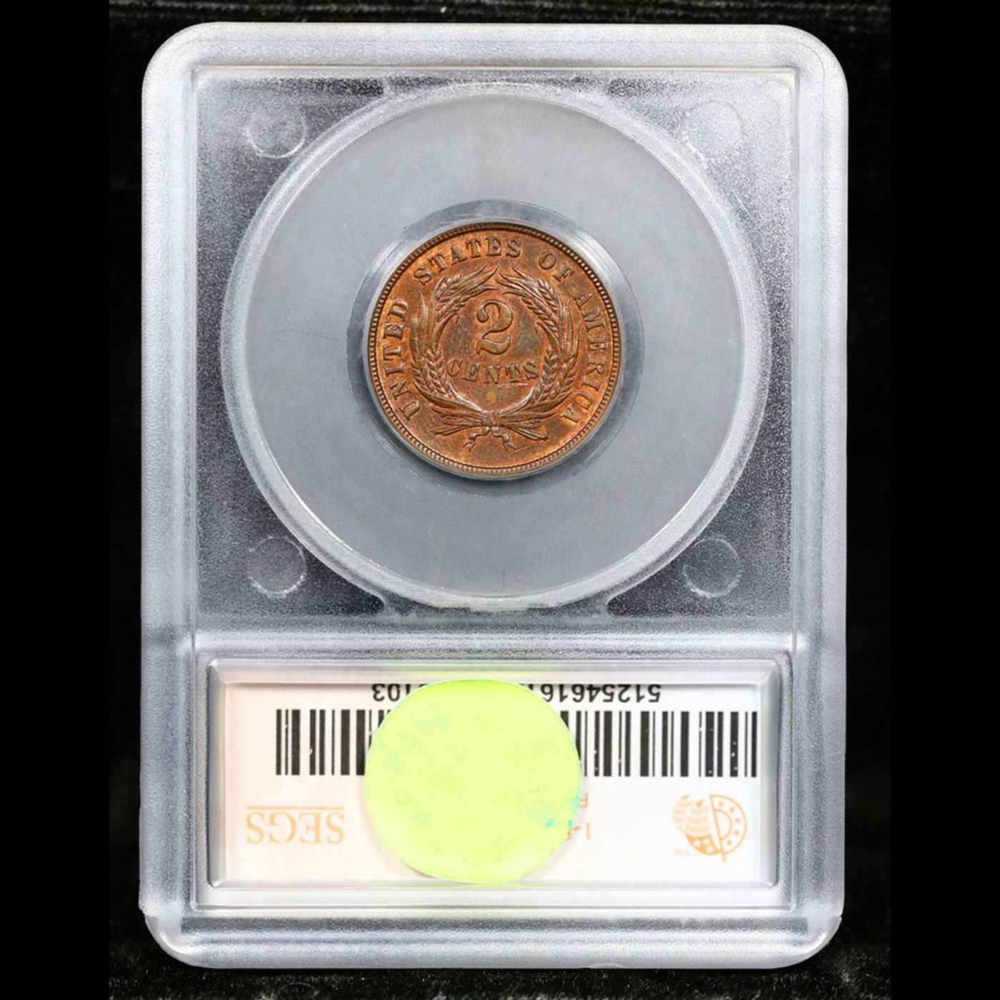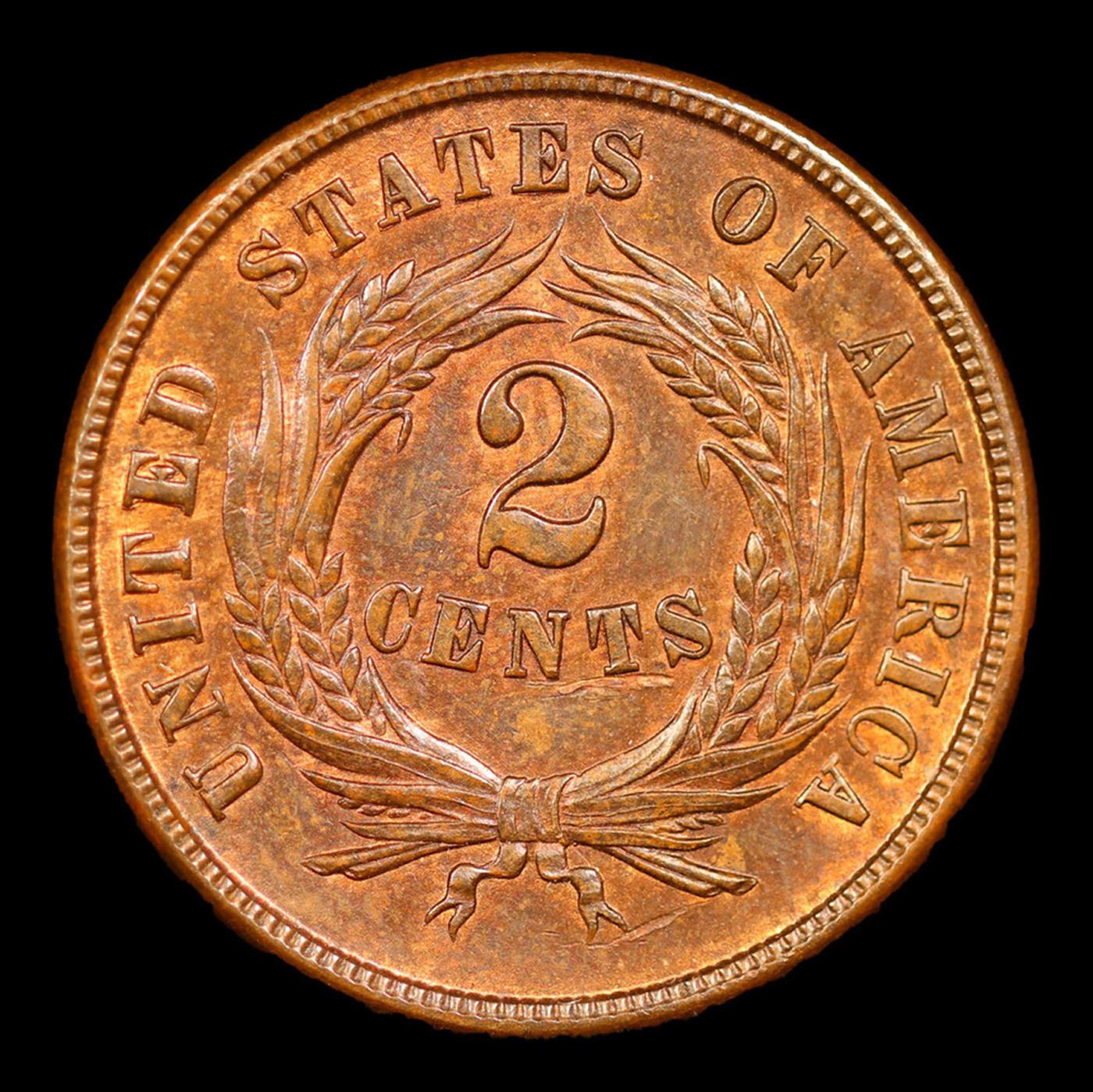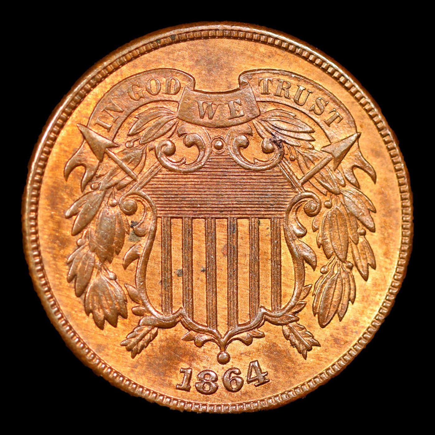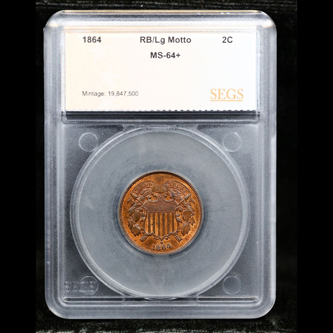 1864 Lg Motto Two Cent Piece 2c Graded ms64+ rb By SEGS.