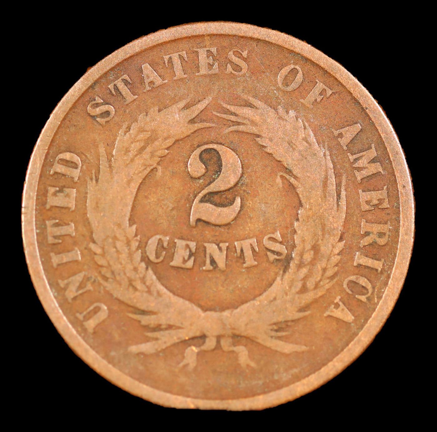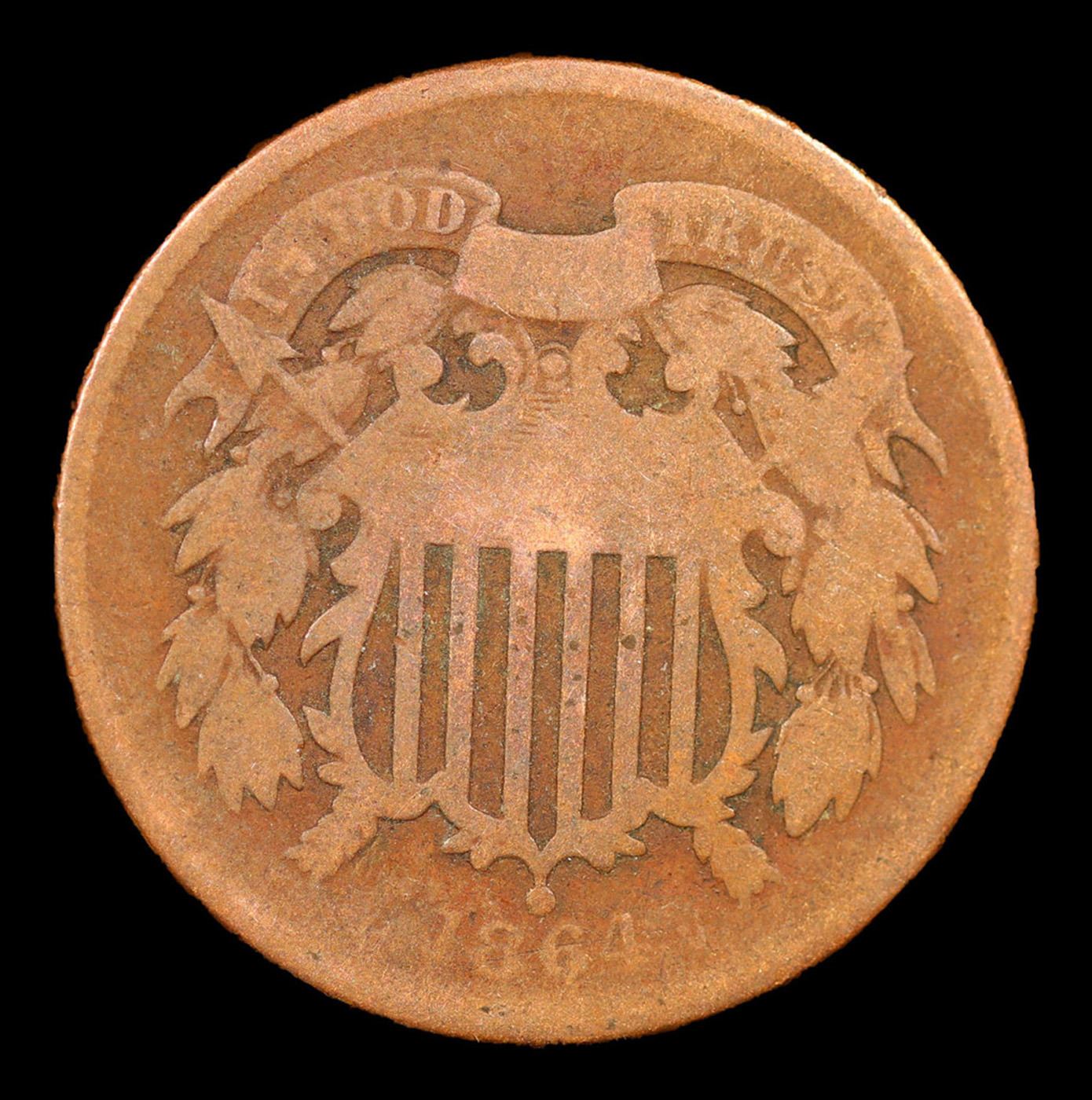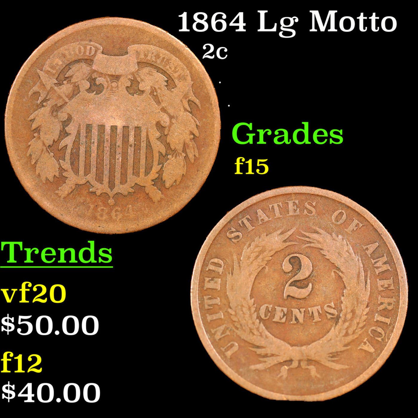 1864 Lg Motto Two Cent Piece 2c Grades f+.