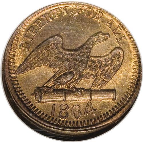 1864 Liberty For All, Fuld 160/417D, MS65 NGC. Copper.