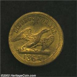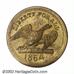 1864 Liberty For All MS62. Brass. Fuld-125/160b. R.9. A firmly struck token showing both details...