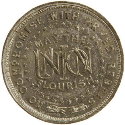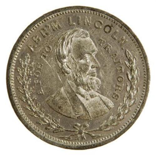 <B>1864 Lincoln and McClellan "No Compromise With Armed Rebels" Medals in White Metal.</B></I> Listed as Sullivan-Dewitt AL 1864-8 and GMcC 1864-16 respectively both of these medals measure 32mm. This is another great design from the Civil War election of 1864. It depicts "Abr'm Lincoln A Foe to Traitors." The reverse exclaims "No Compromise With Armed Rebels. May The Union Flourish." It was no doubt issued in response to the nomination of McClellan by the Peace Democrats in Chicago. Really choice, flawless condition with highly reflective surfaces. Another key piece for the Lincoln buff! The McClellan example offered here is also in choice condition with just a few minor scratches; it has the same reverse as the Lincoln; but the obverse does not have the line about traitors. An excellent pair for this election.