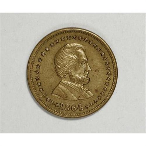 <B>1864 Lincoln and Union Civil War Token.</B></I> This 1864 token features the older bust of Lincoln on the obverse and LINCOLN AND UNION on the reverse, <B>Fuld-128/290, R.4.</B></I><BR><BR><b>Shipping:</b> Coins & Currency (<a target="_blank" href="http://www.heritageauctions.com/common/shipping.php">view shipping information</a>)