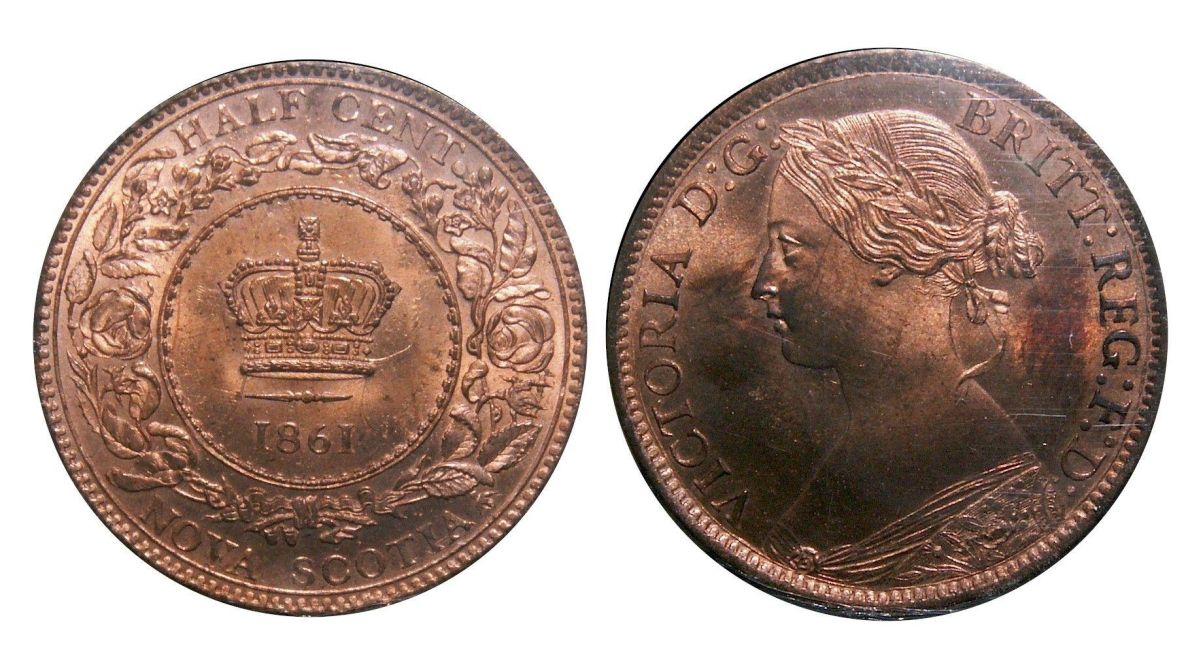 1864 N.S. 1/2¢ TIED FOR FINEST KNOWN! ICCS MS-65 RED PQ+, 95% red luster with greay fileds. Believed to be the nicest. Rare