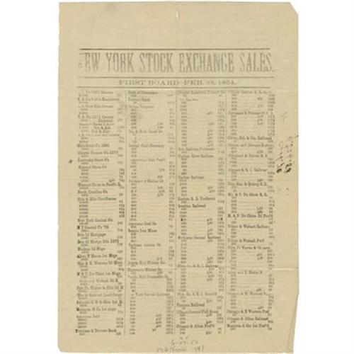 <B>1864 New York Stock Exchange Printed Circular</B></I>. One page, printed on one side, 7.5” x 11”, dated February 23, 1864, ink notations on the verso, lightly faded with a few small splits in the fold creases, else good condition. <I>Ex. Henry E. Luhrs Collection</B></I>.<BR><BR><b>Shipping:</b> Flat Material, Small (<a target="_blank" href="http://www.heritageauctions.com/common/shipping.php">view shipping information</a>)