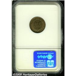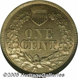 <B>1864 One Cent, Judd-356b (unlisted in earlier editions), Pollock-426a, Snow PT1-3c, R.8, MS65 NGC.</B></I> The dies are those of the regular issue 1864 No L Indian Cent, but, while struck in copper-nickel, this coin was impressed on a planchet whose thickness most closely resembles that of the bronze Cents. Pollock (1994) was aware of only one example of this variety, the coin that sold as lot 656 in Stack's October 1992 sale of the Floyd T. Starr Collection. We do know of a second example, the coin that was offered as lot 7460 in our February 2001 Long Beach Signature Sale, and the present representative appears to be a third. Whereas the other two coins are proofs, NGC has designated this coin a business strike. Both sides are overall medium tan in appearance with blushes of delicate champagne tinting here and there. The date and the upper portion of the shield are indistinct, while the portrait and remaining legends are bold. For pedigree purposes, two miniscule green flecks are noted on the obverse denticles at 11 o'clock and between a pair of feather tips.