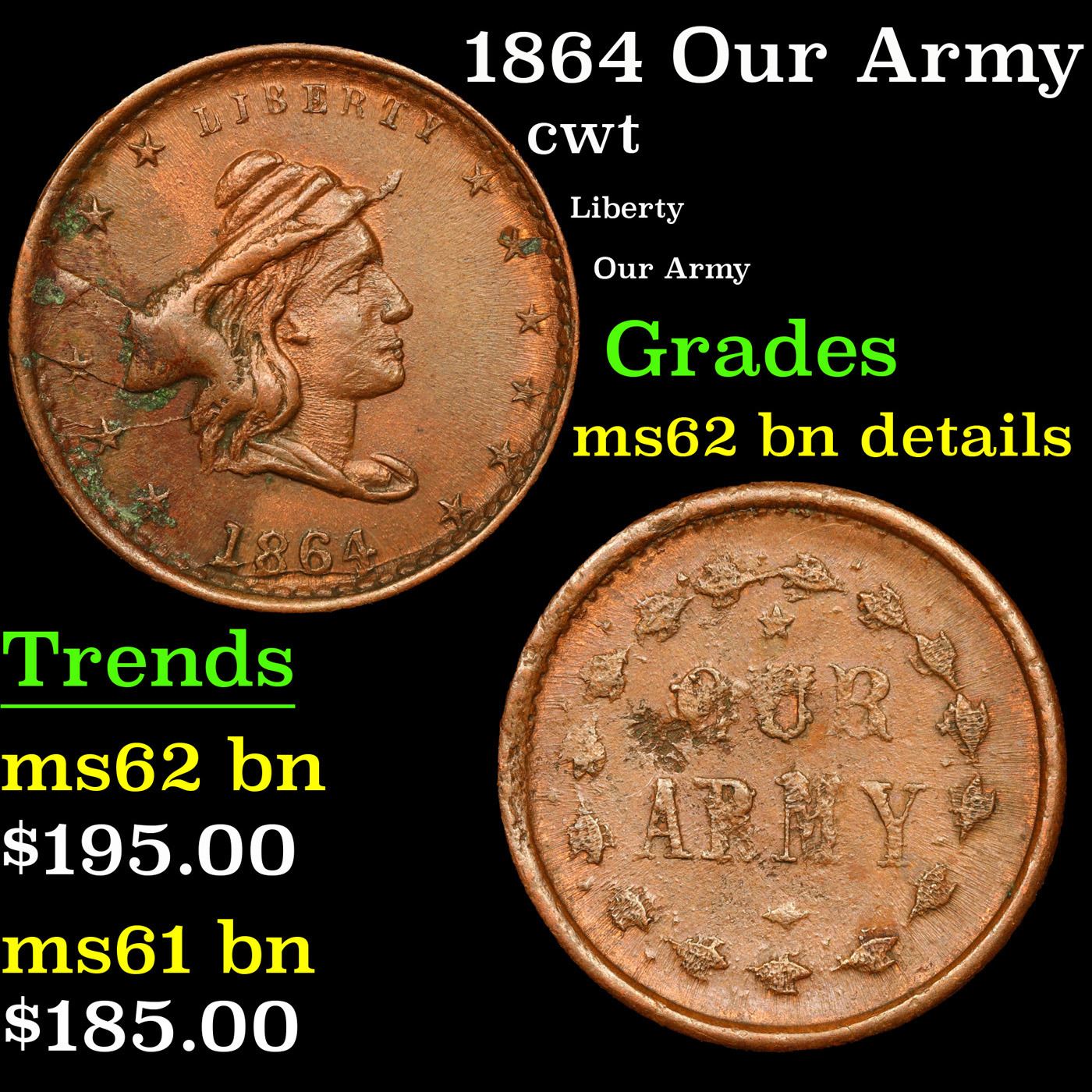 1864 Our Army Civil War Token 1c Grades Unc Details.