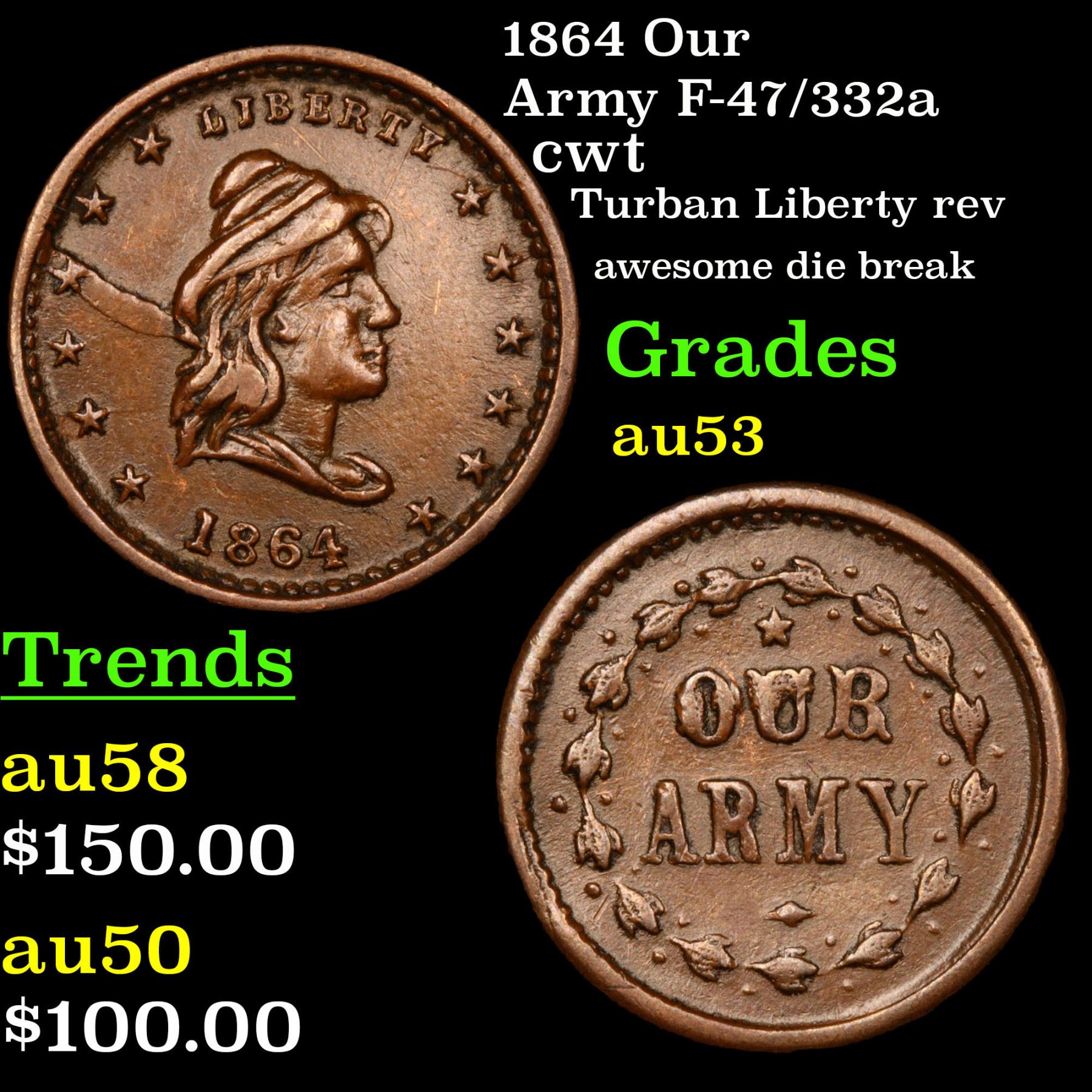1864 Our Army F-47/332a Civil War Token 1c Grades Select AU.