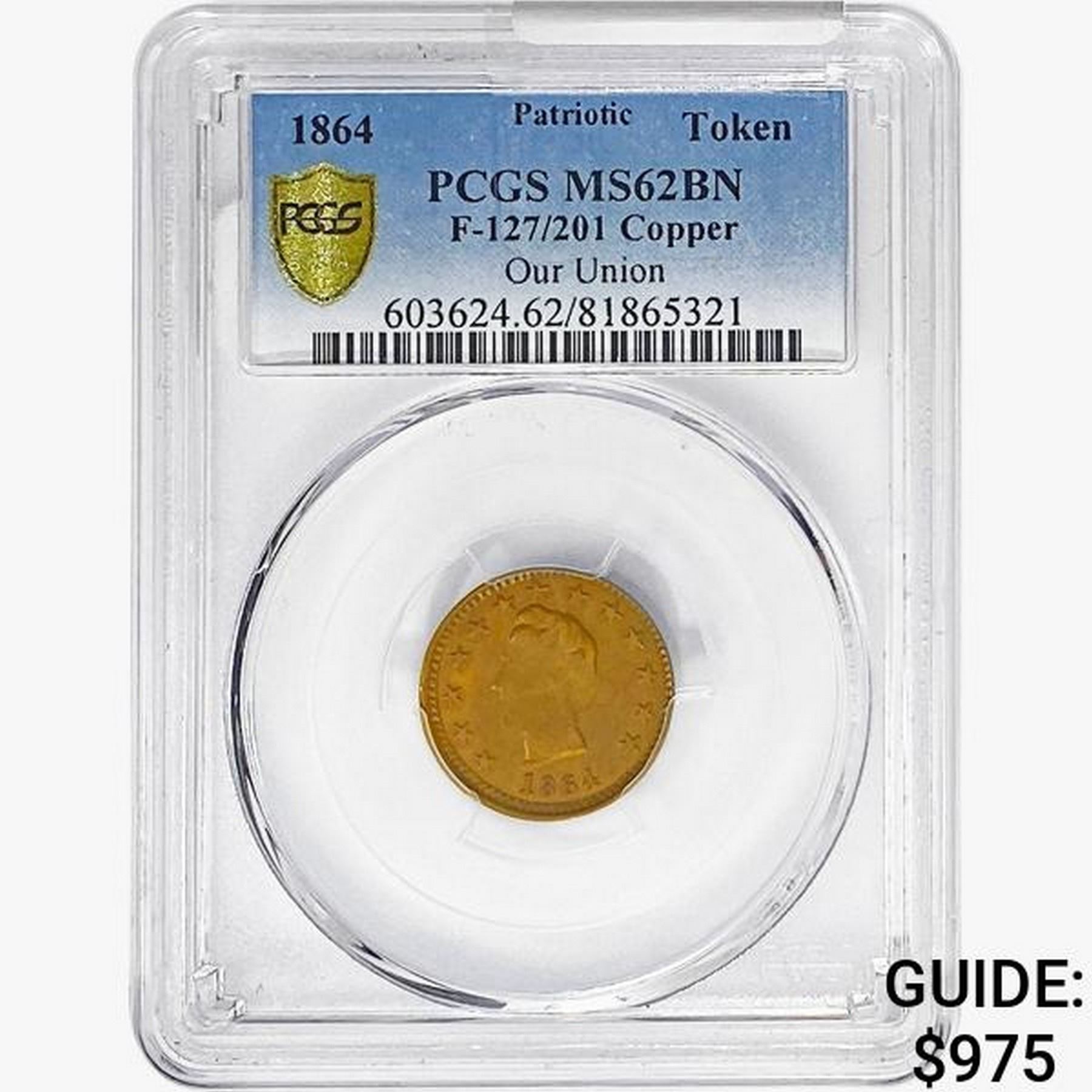 1864 Patriotic Token F-127/201 Copper PCGS MS62 BN