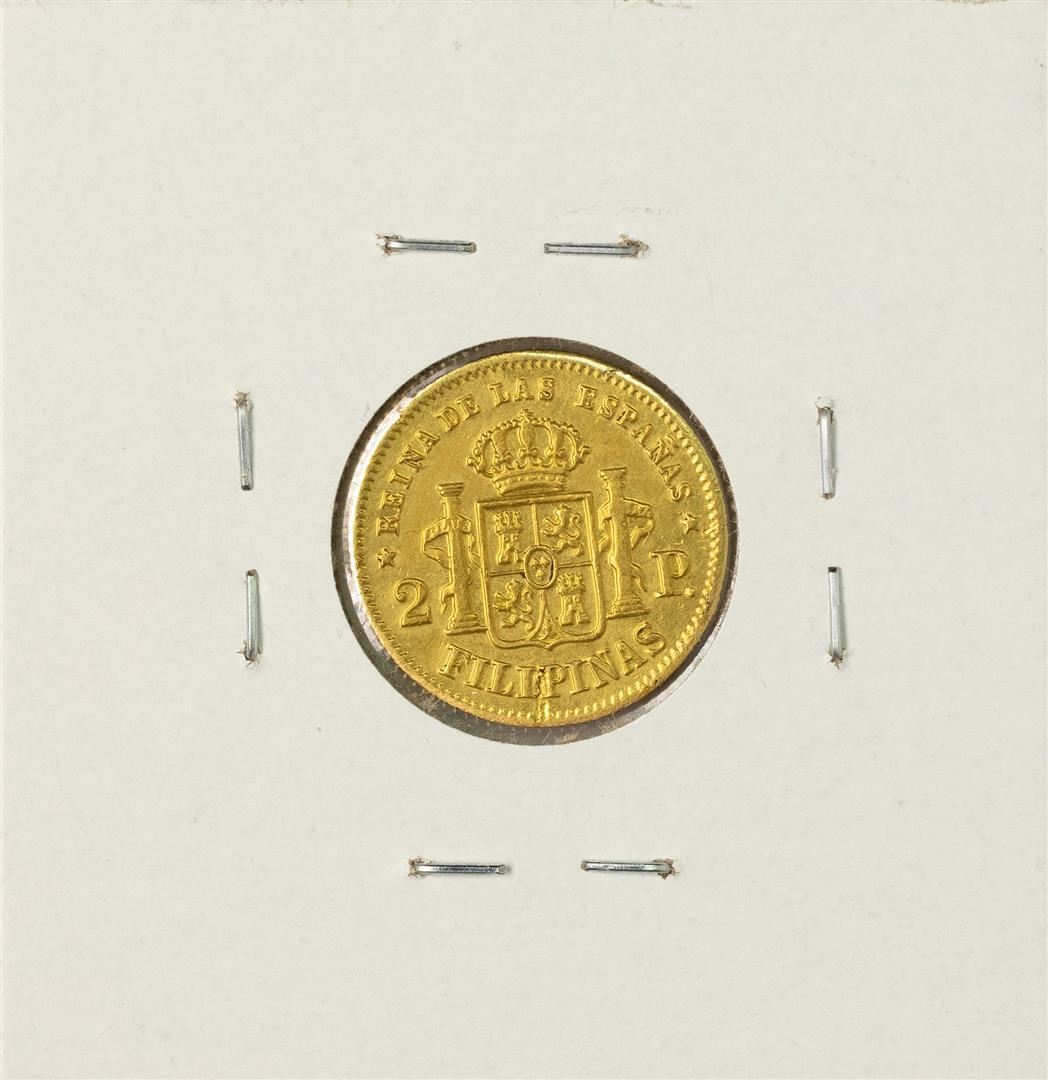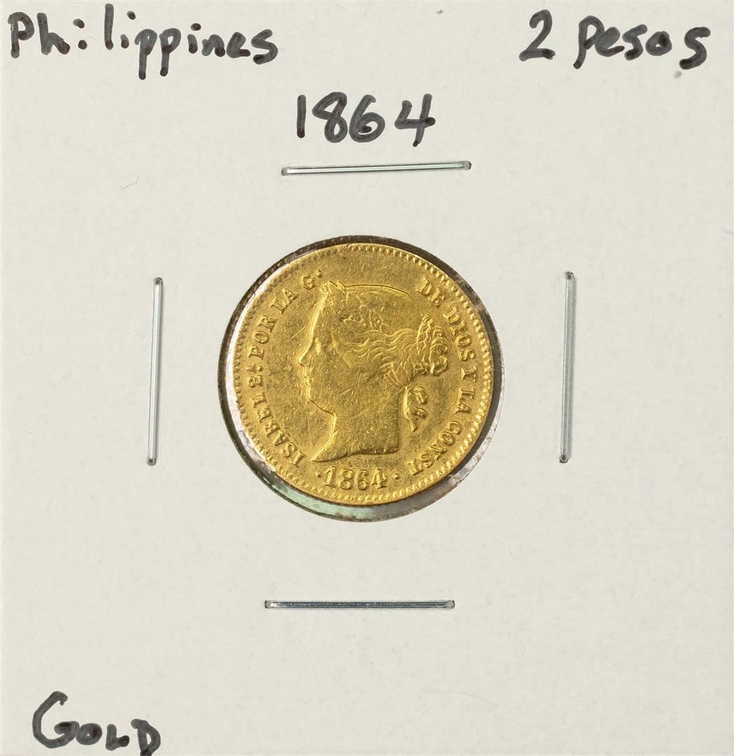 One 1864 Philippines 2 Pesos Gold Coin.