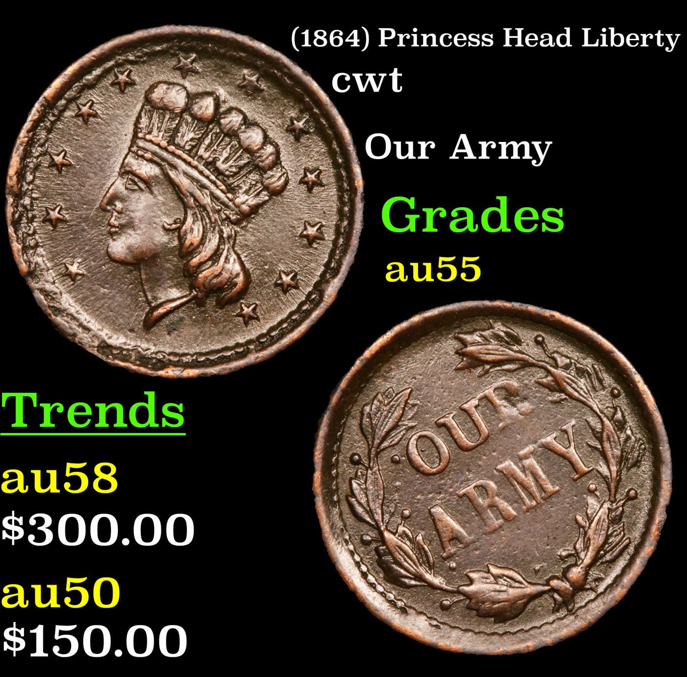 (1864) Princess Head Liberty Civil War Token 1c Grades Choice AU.