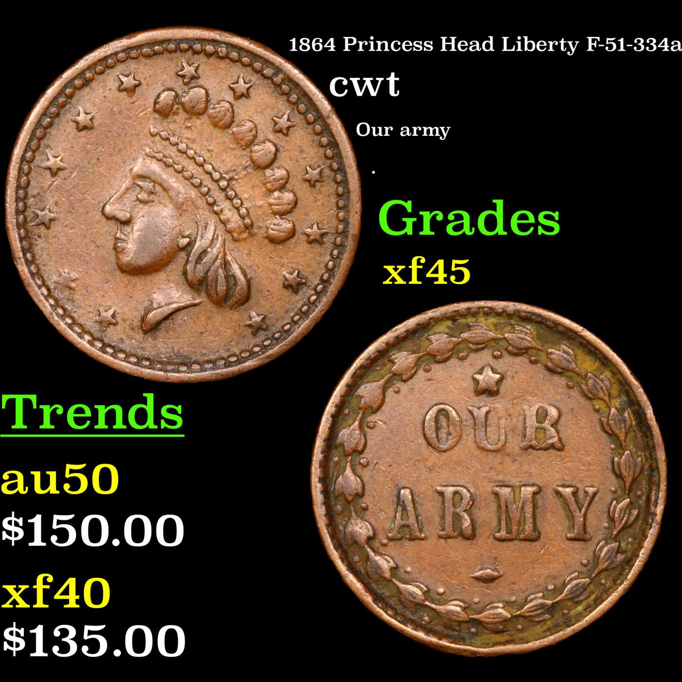 1864 Princess Head Liberty F-51-334a Civil War Token 1c Grades xf+.