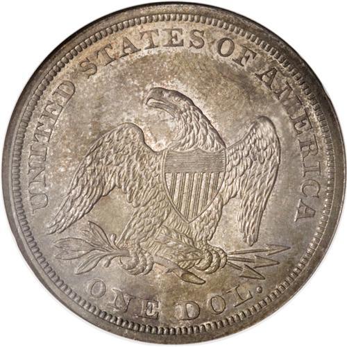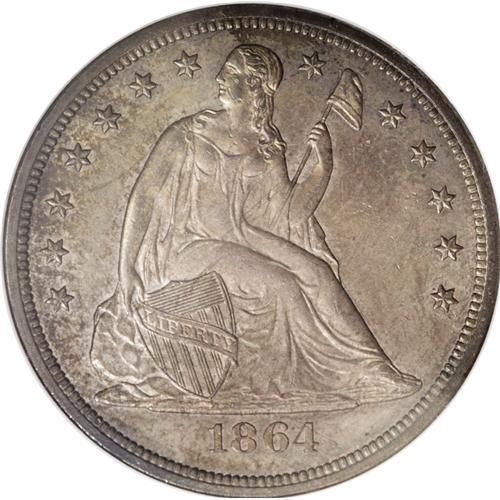 1864 S$1 MS64 NGC. A deeply toned near-Gem example, th