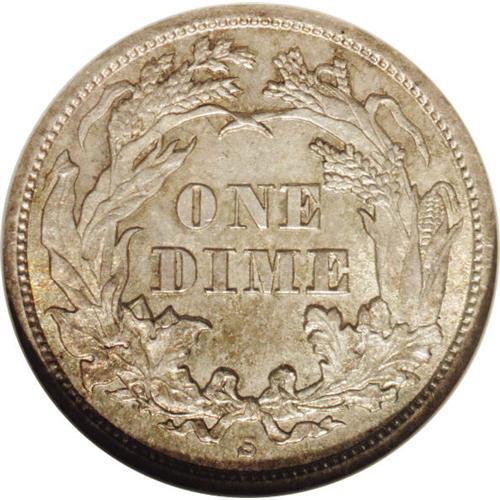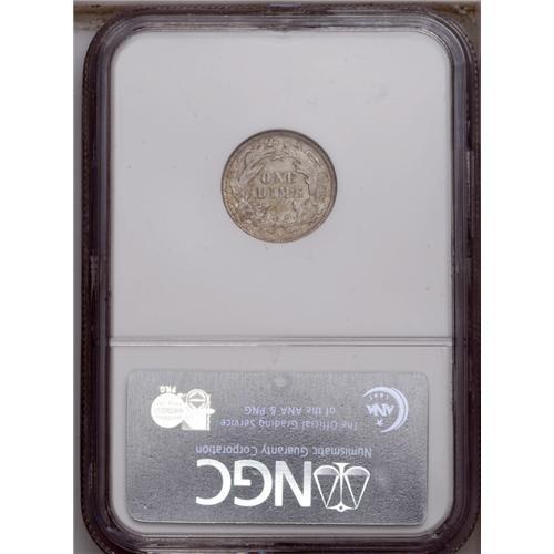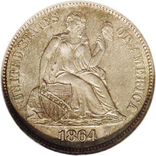 <B>1864-S<10C> MS64 NGC.</B></I> An extremely important opportunity for the advanced collector, as few near-Gem or finer examples of this date have been certified. Mostly sharply detailed although slight weakness is visible within the lower part of the wreath, and at the mintmark. Frosty and lustrous surfaces are subdued by pale heather and iridescent toning. Census: 10 in 64, 3 finer (1/06).