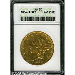 <B>1864-S $20 AU50 ANACS.</B></I> Well struck and typically worn, for the grade, with bright pink-orange and lime-green coloration. Lightly worn with a few moderate abrasions on the obverse.