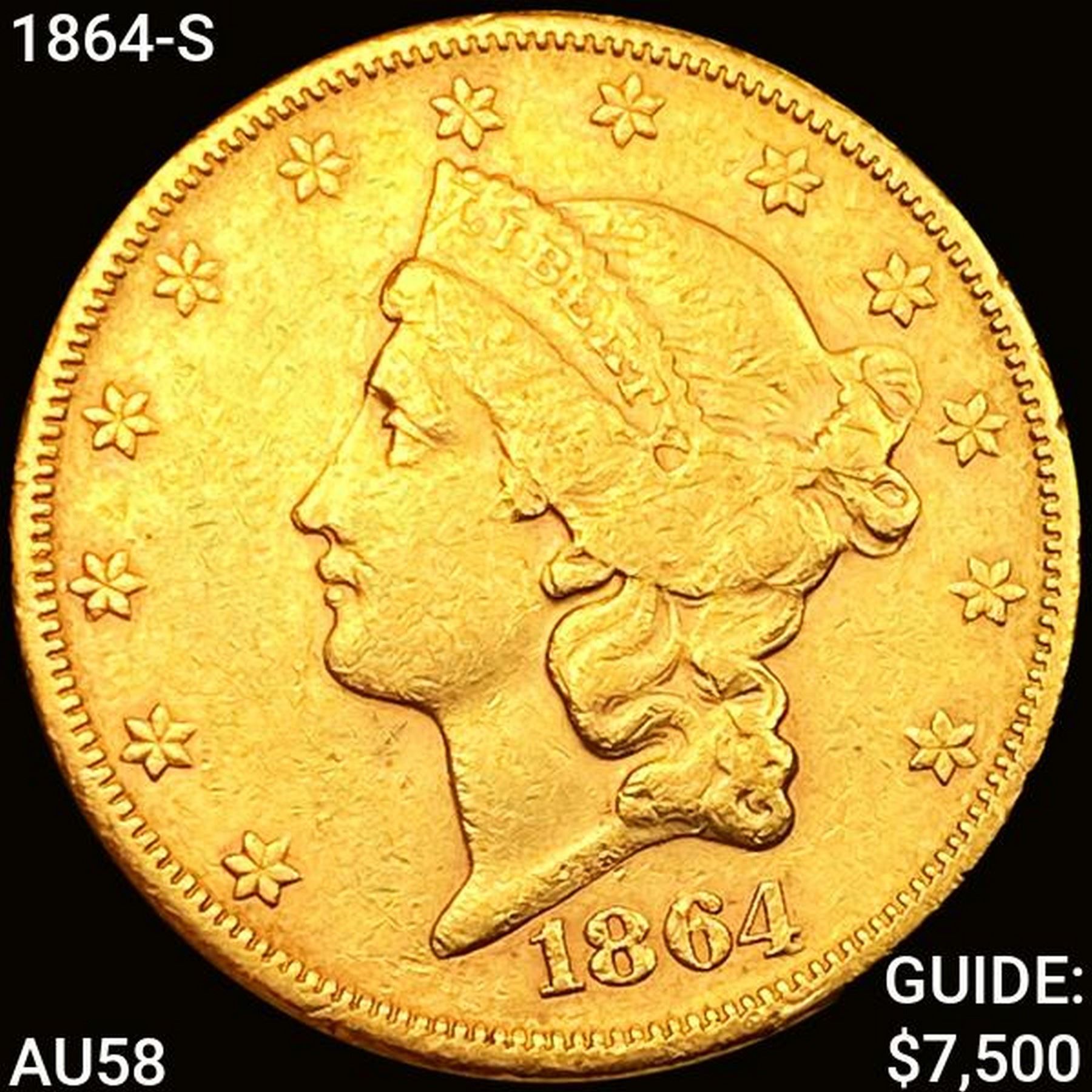 1864-S $20 Gold Double Eagle CLOSELY UNCIRCULATED