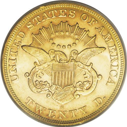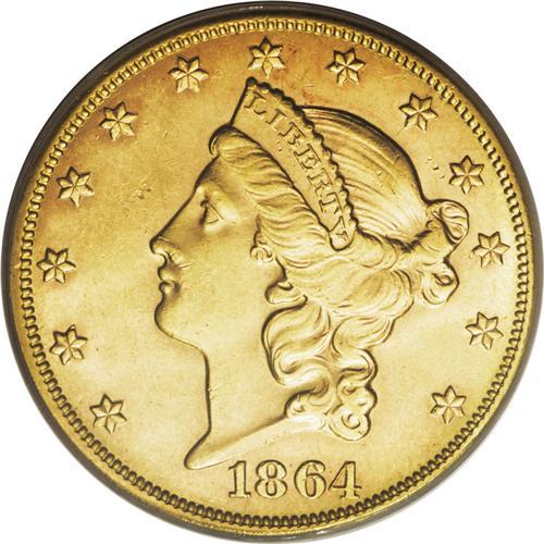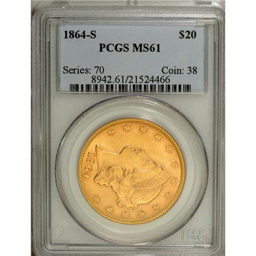 1864-S $20 MS61 PCGS. Well struck and lustrous, with b