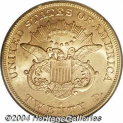 <table><tr><td><table><tr><td>1864-S $20 MS61 PCGS. Well struck and lustrous, with beautiful, bright, rather granular surfaces that have a distinctly matte-like texture, lovely pink and green-gold colors, and a few scattered, superficial blemishes. Possibly a survivor of the sunken S.S. Brother Jonathan. Population: 18 in 61, 9 finer (3/04). <BR><BR><B>Important notice:</B> Heritage usually auctions material at the rate of 200-250 lots per hour. On some occasions eBay Live bid software or the Internet may not be able to keep up with the pace of the auction. We recommend placing a realistic absentee bid now as insurance to avoid disappointment. Occasionally the auctioneer may eliminate or reject an eBay Live bid, and the auctioneer may also reopen a lot after the close of the eBay live bidding (usually because we missed an audience bid), and may reject your bid even if it shows you as the winning bidder. By bidding via eBay Live, you agree that Heritage may award the lot to another bidder at its sole discretion under the circumstances described above or any other reasonable circumstances. Since eBay bids are not shown to us until we open the lot on the floor, we treat those bids just like floor bids. In most cases the floor responds before the eBay bid is presented to us, due to Internet lag time, so for consistency we have made it a policy that floor bids are always considered first over tie eBay live bids. Also please note that all Heritage lots purchased through eBay Live carry a 20% Buyer's Premium. Please make sure you read the Terms and Conditions before you bid. <BR><BR><B>IMPORTANT ANNOUNCEMENT ABOUT RESERVES:</B> Heritage now divulges all reserves on its web site 7 days before every auction. If you want to know whether the reserve on this lot has been met, and if not, what the reserve amount is, please visit this lot page on the HeritageCoin.com web site, or email: bid@HeritageGalleries.com </span></font></td></tr></table></td></tr></table>