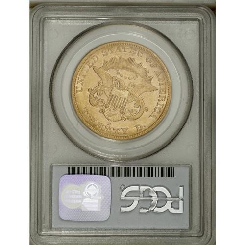 <B>1864-S $20 XF45 PCGS.</B></I> Far from the events of the Civil War, the San Francisco Mint produced gold coins in greater quantity than the parent Mint in Philadelphia. This lightly worn and typically struck piece's still-lustrous and somewhat abraded surfaces take on a slight orange hue.<BR><BR><b>Shipping:</b> Coin/Currency (<a target="_blank" href="http://www.heritageauctions.com/common/shipping.php">view shipping information</a>)