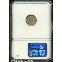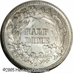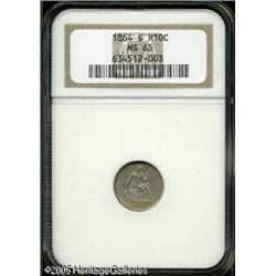 <B>1864-S H10C MS65 NGC.</B></I> Undoubtedly this piece is from the small hoard of this difficult Civil War era issue that surfaced in the early 1970s. The richly frosted surfaces are covered with light gray toning. Sharply defined throughout with no obvious or distracting abrasions as would be expected of the Gem designation. Population: 7 in 65, 8 finer (1/05). Lot:6145