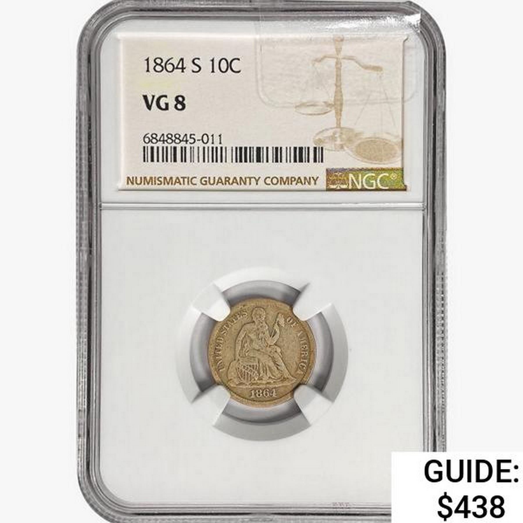 1864-S Seated Liberty Dime NGC VG8