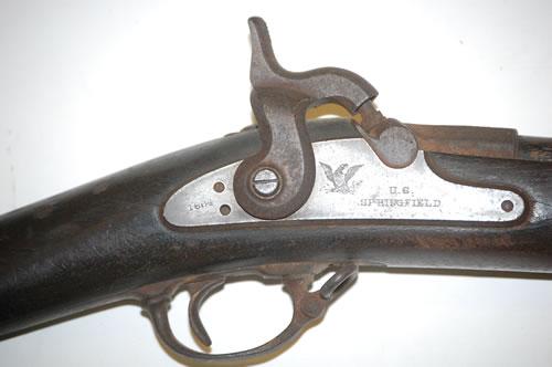 1864 SPRINGFIELD MODEL TRAINING RIFLE W/ WALNUT STOCK & IRON RAMROD-MARKED U.S. SPRINGFIELD W/ EAGLE MARK & U.S. (45 1/2" L) - NON-FUNCTIONING WEAPON, WEAR, OXIDATION, IMPERFECTIONS