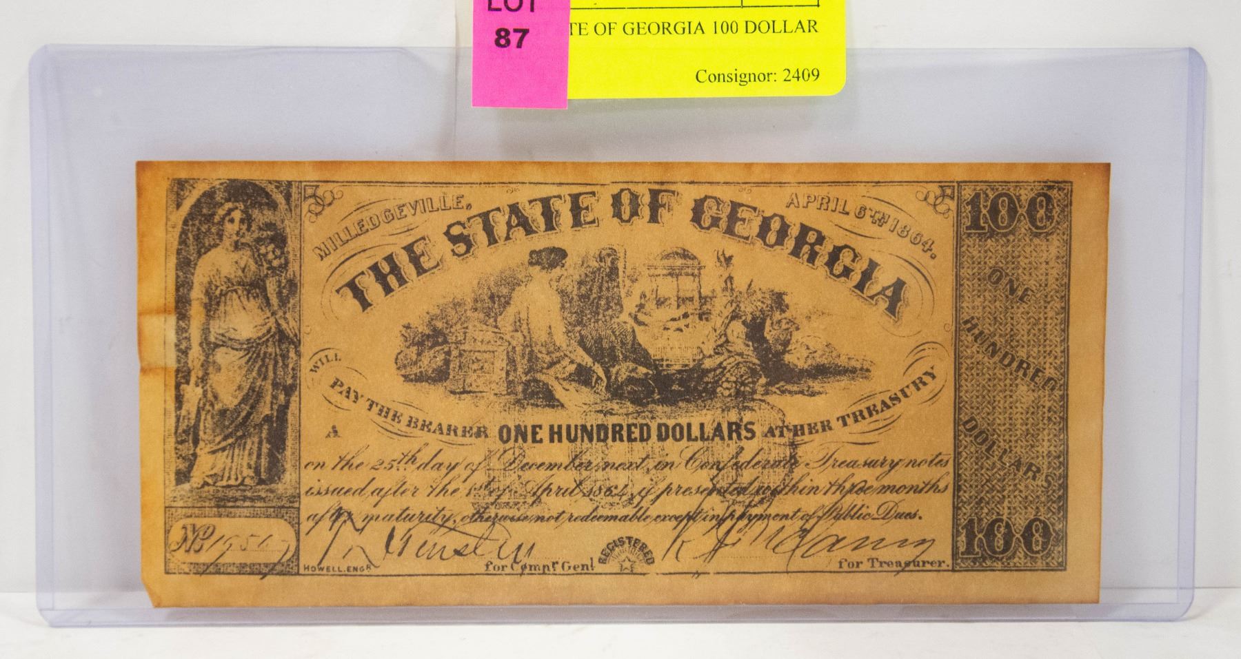 1864 STATE OF GEORGIA 100 DOLLAR BILL
