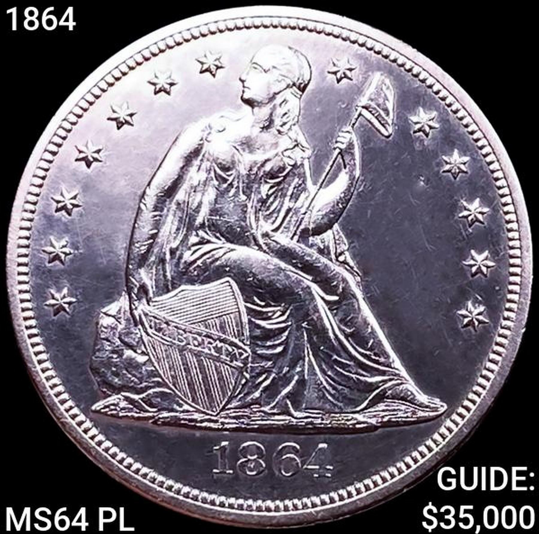 1864 Seated Liberty Dollar CHOICE BU PL