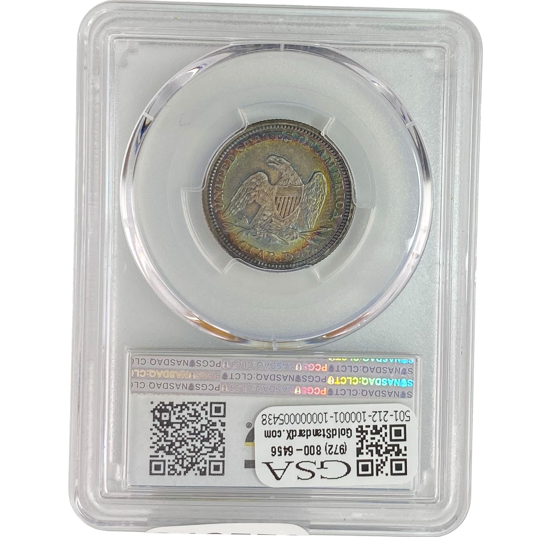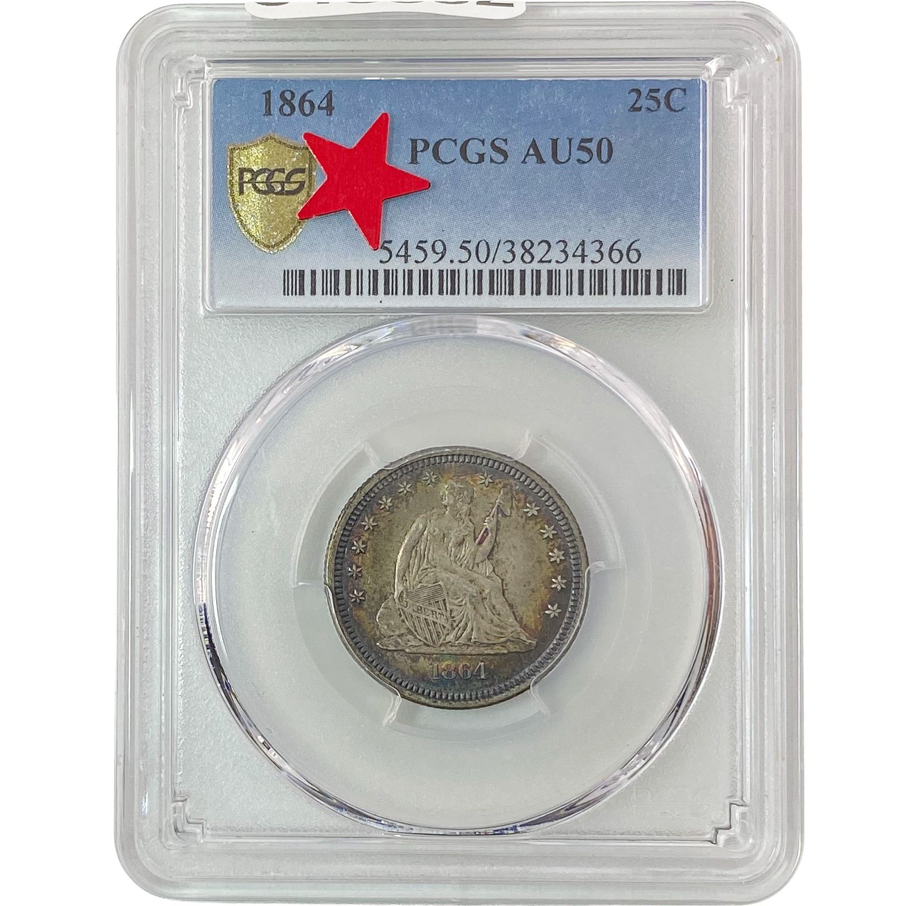 1864 Seated Liberty Quarter PCGS AU50 PQ COLOR