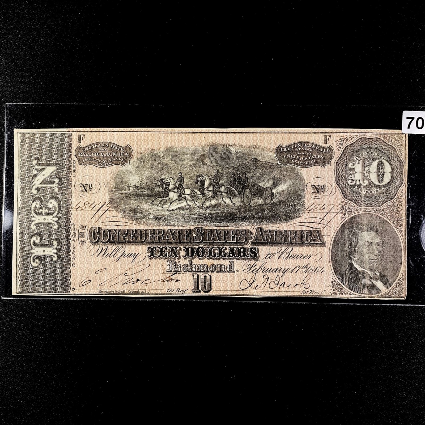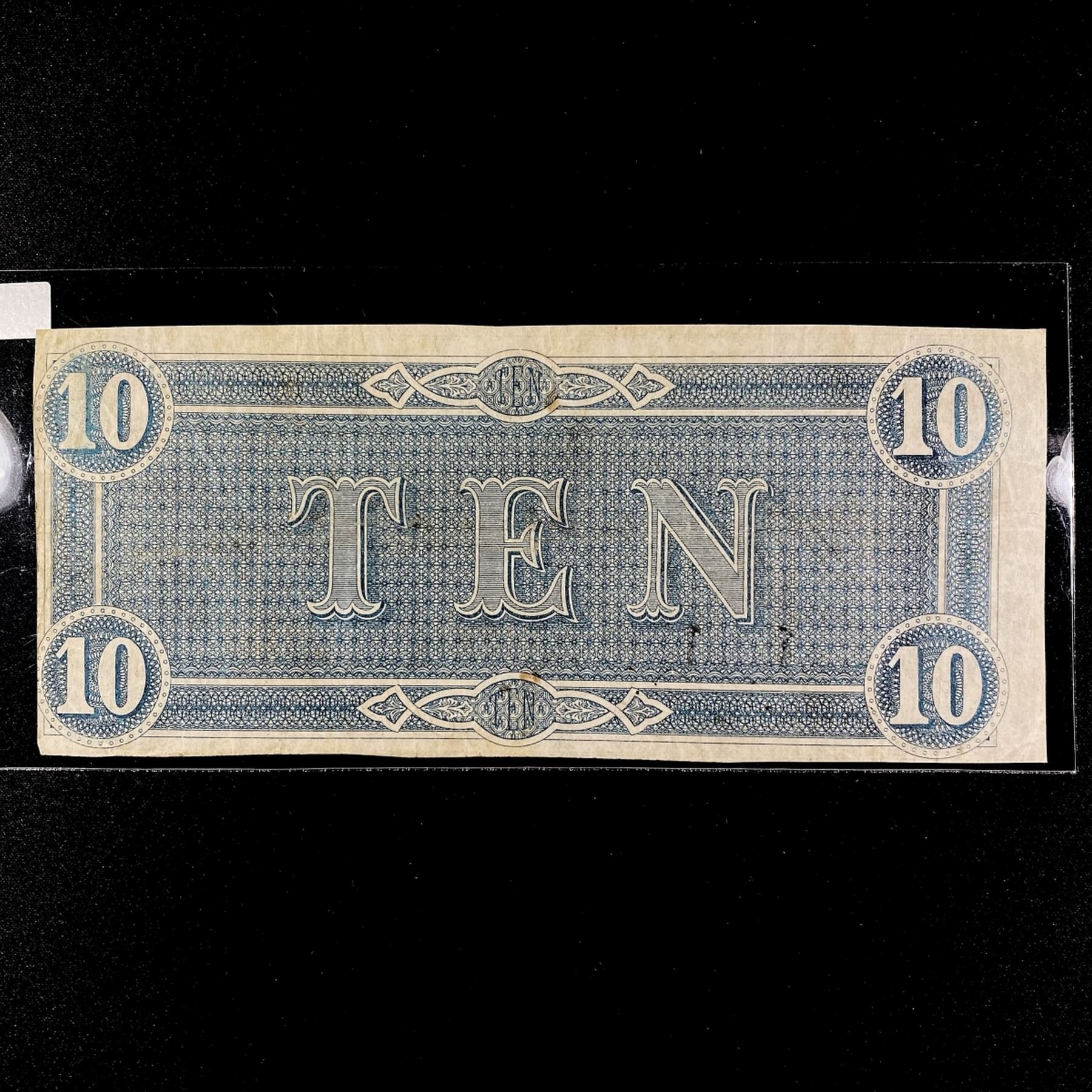 1864 Series $10 Dollar Confederate States Note