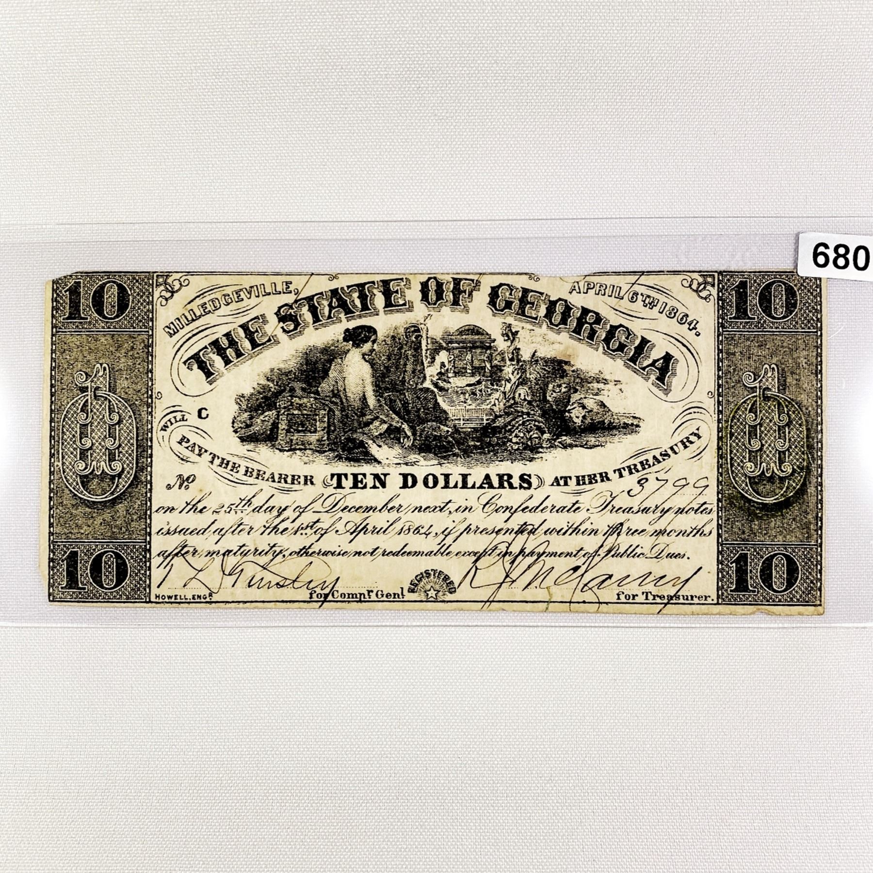 1864 Series $10 State of Georgia Confederate Note
