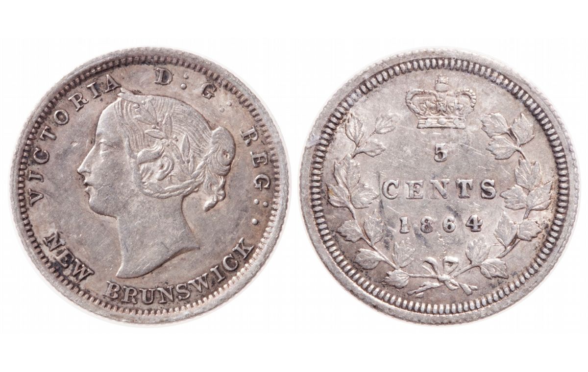 1864. Small '6' variety. ICCS AU-50. Lightly toned.