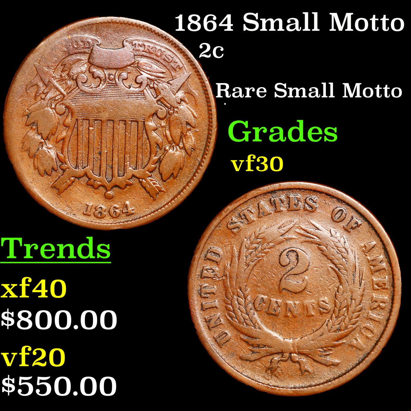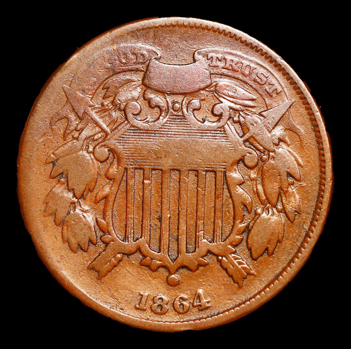 1864 Small Motto Two Cent Piece 2c Grades vf++.