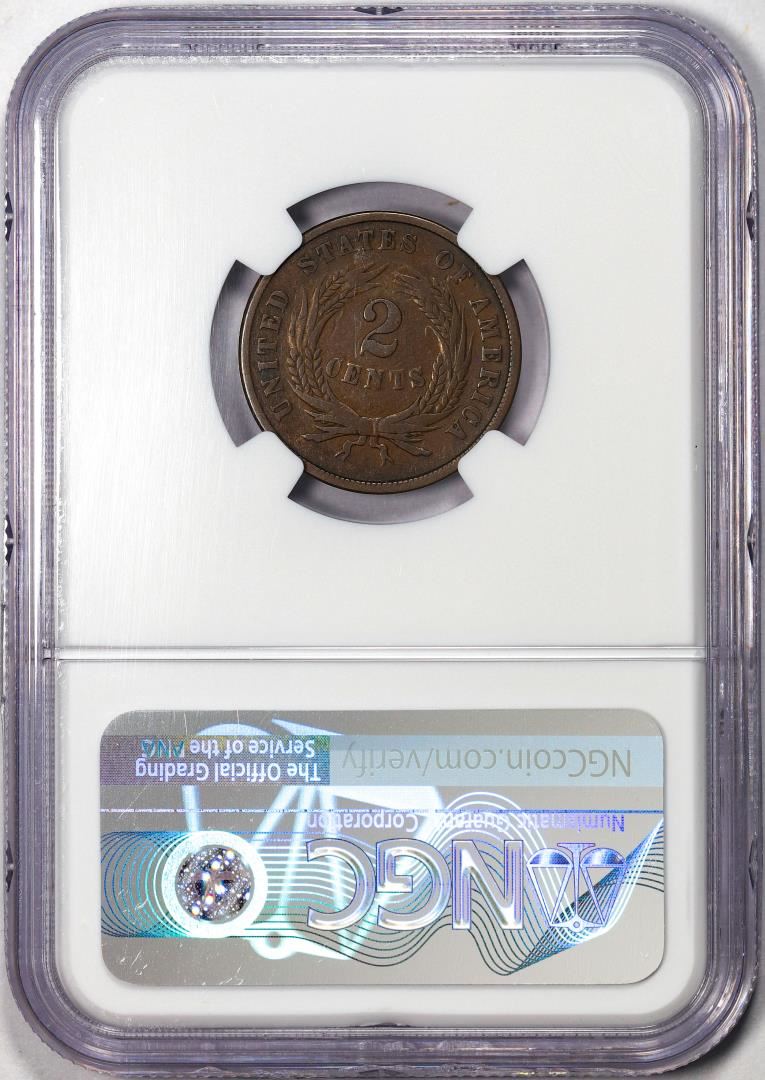 One 1864 Small Motto Two Cent Piece Coin NGC VF20BN. NGC Certified.