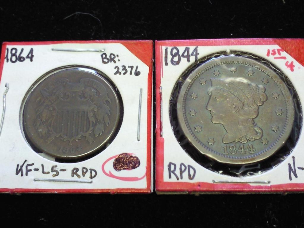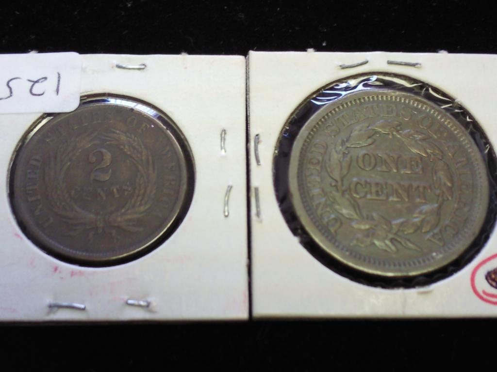 TWO CENT PIECE IS A (FINE), US LARGE CENT IS A (FINE)