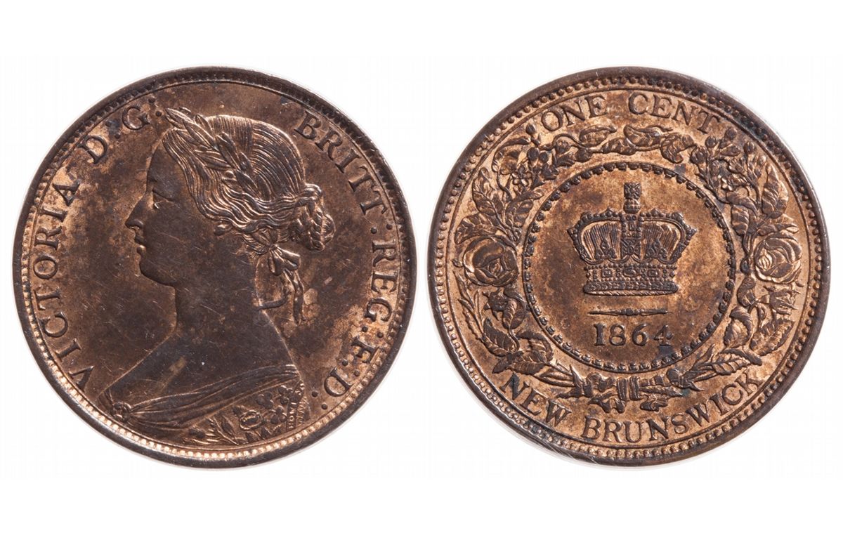 1864. Tall '6' variety. ICCS Mint State-62. Trace (25%) of red luster.