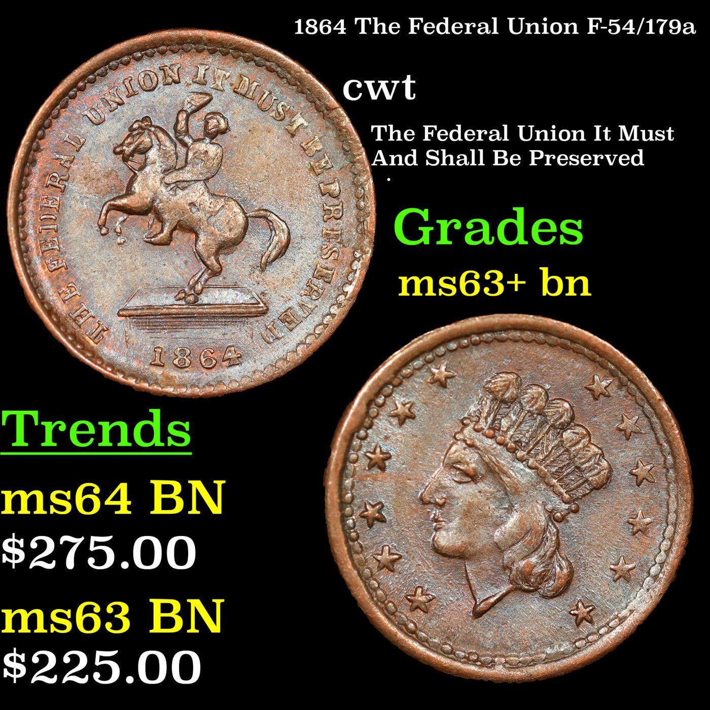 1864 The Federal Union F-54/179a Civil War Token 1c Graded ms63+ bn.