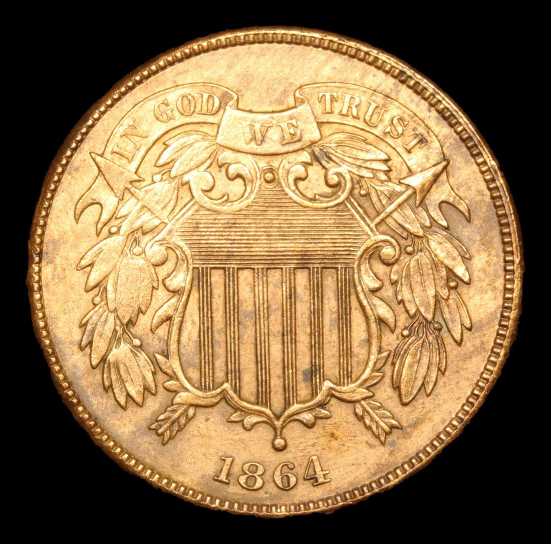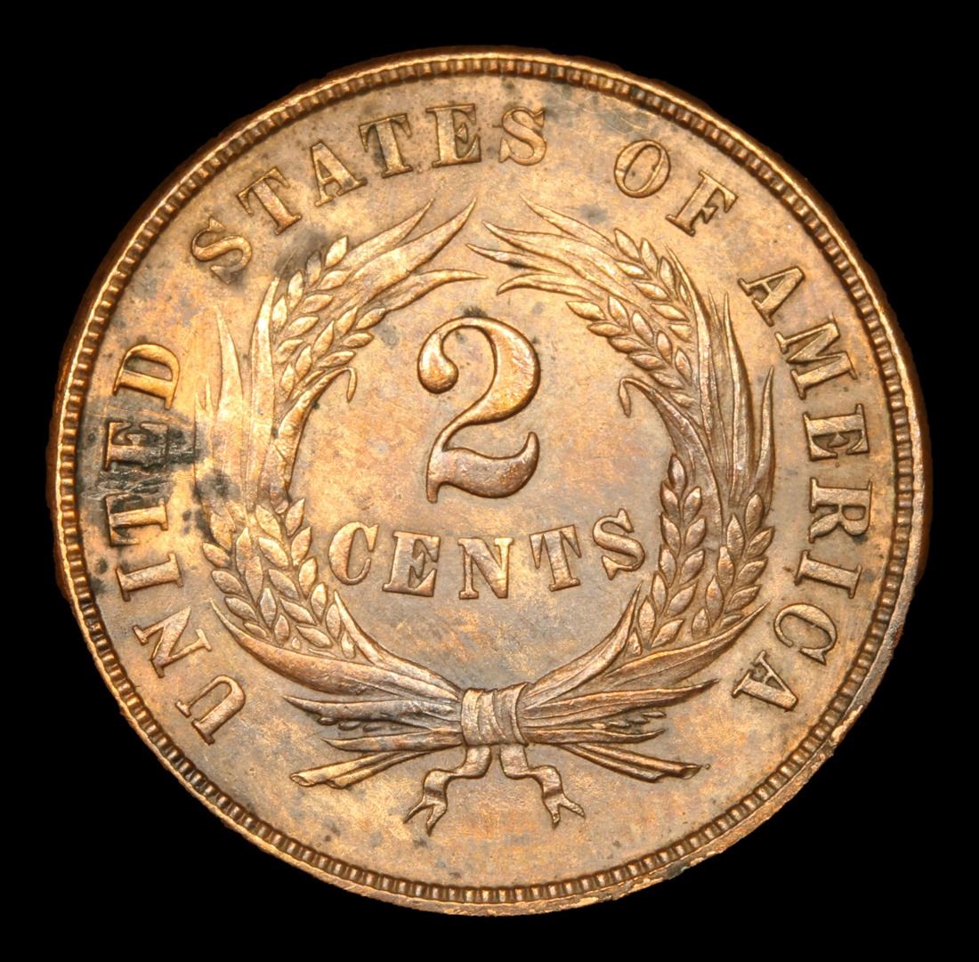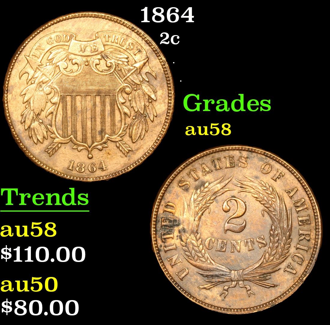 1864 Two Cent Piece 2c Grades Choice AU/BU Slider.
