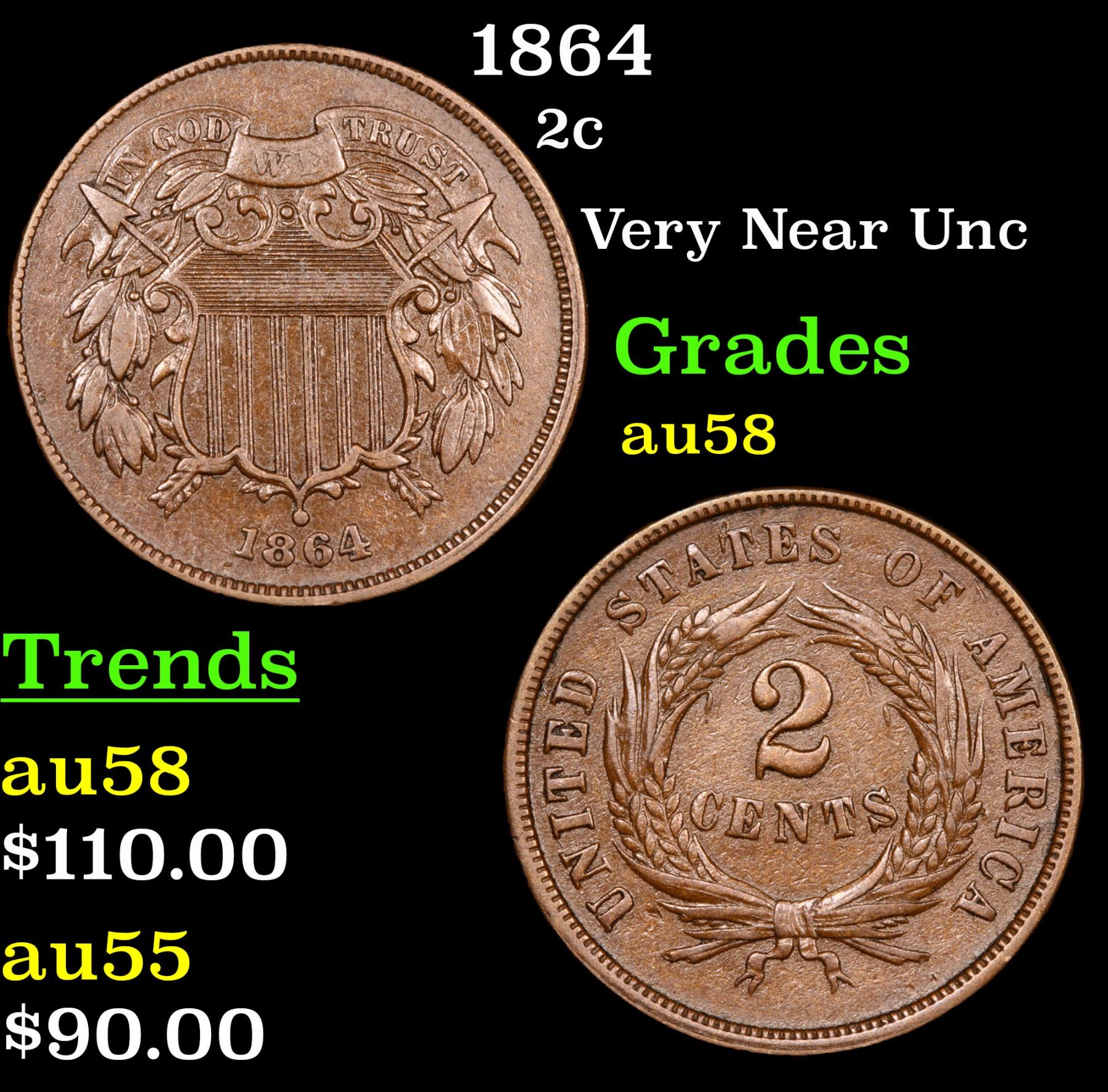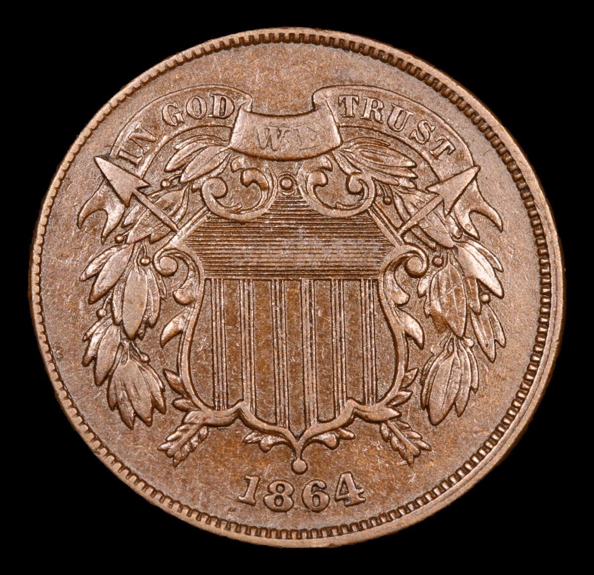 1864 Two Cent Piece 2c Grades Choice AU/BU Slider.