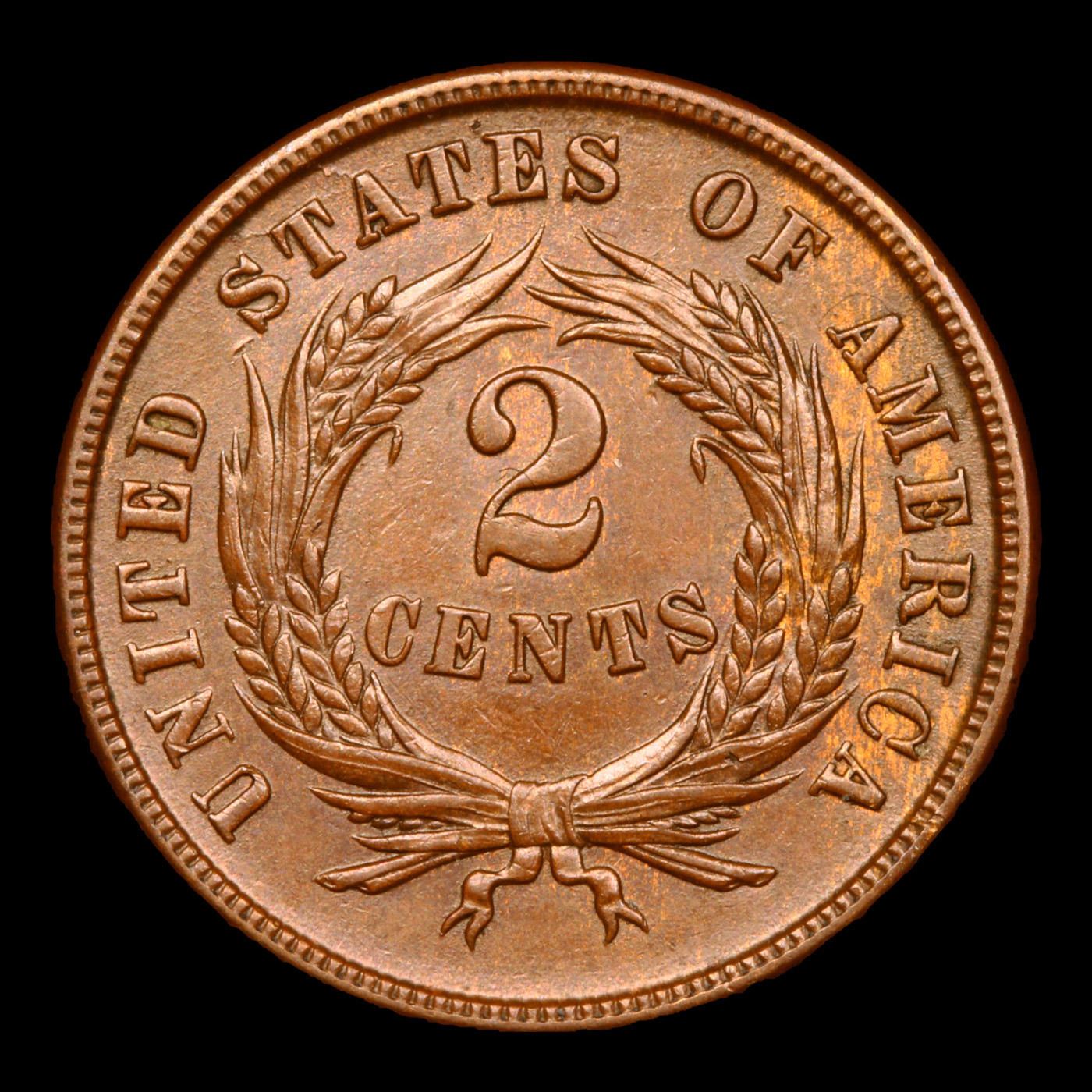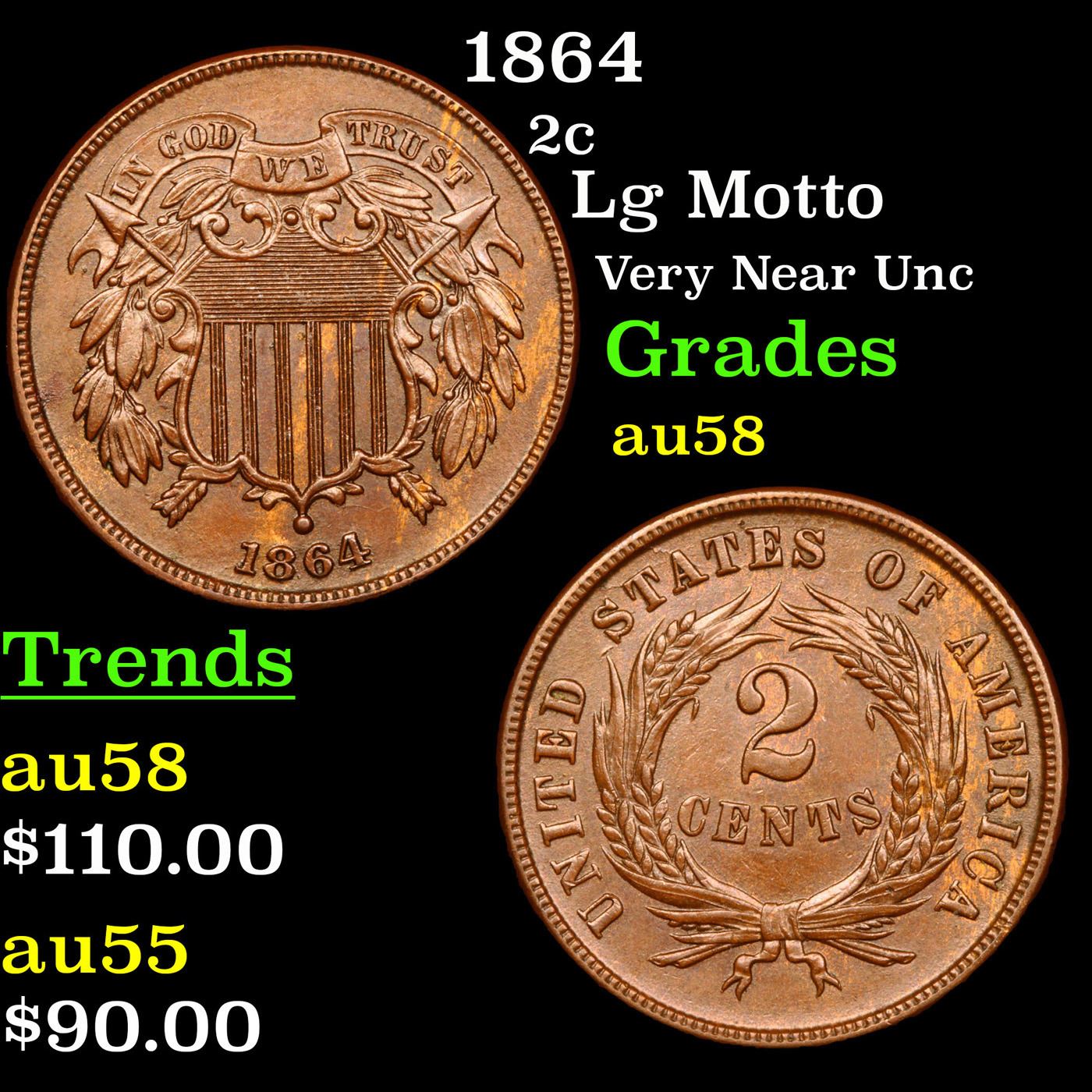 1864 Two Cent Piece 2c Grades Choice AU/BU Slider.