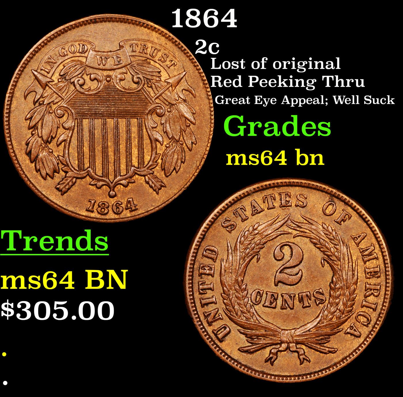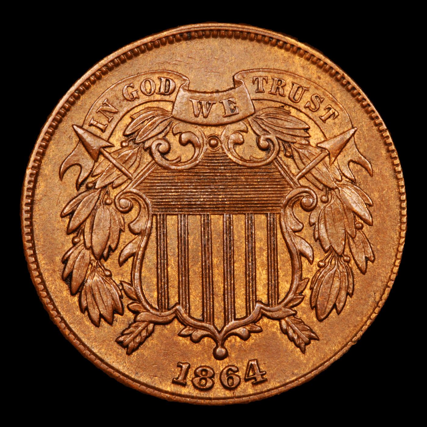 1864 Two Cent Piece 2c Grades Choice Unc BN.