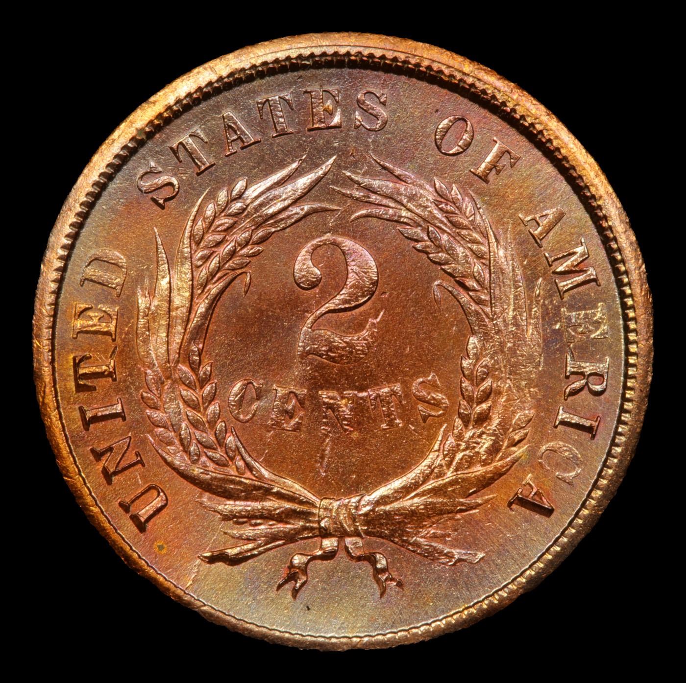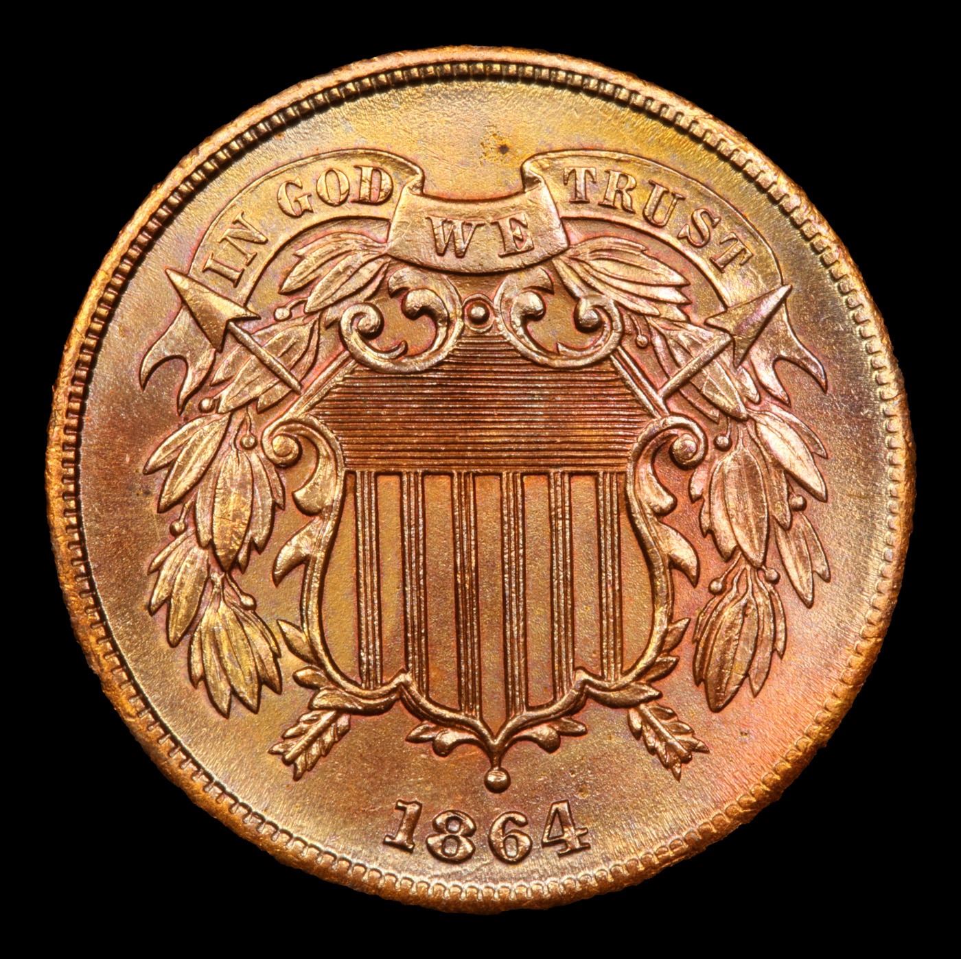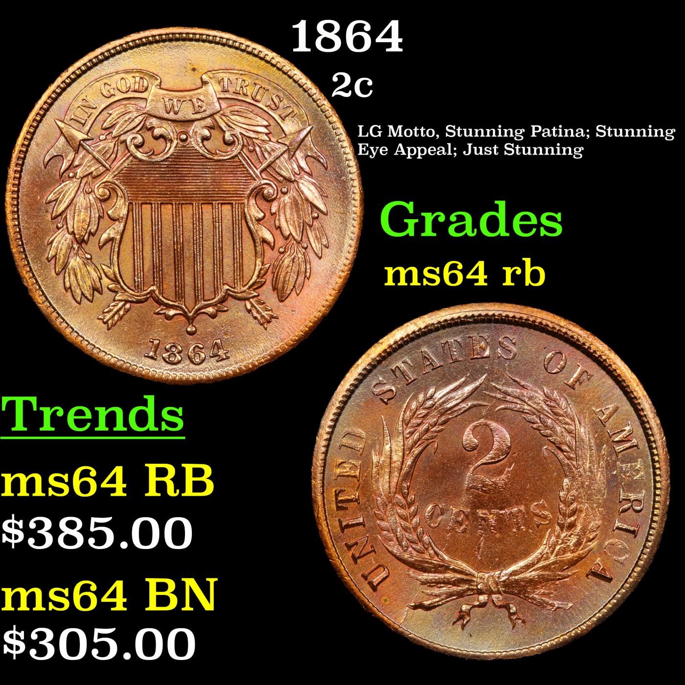 1864 Two Cent Piece 2c Grades Choice Unc RB.