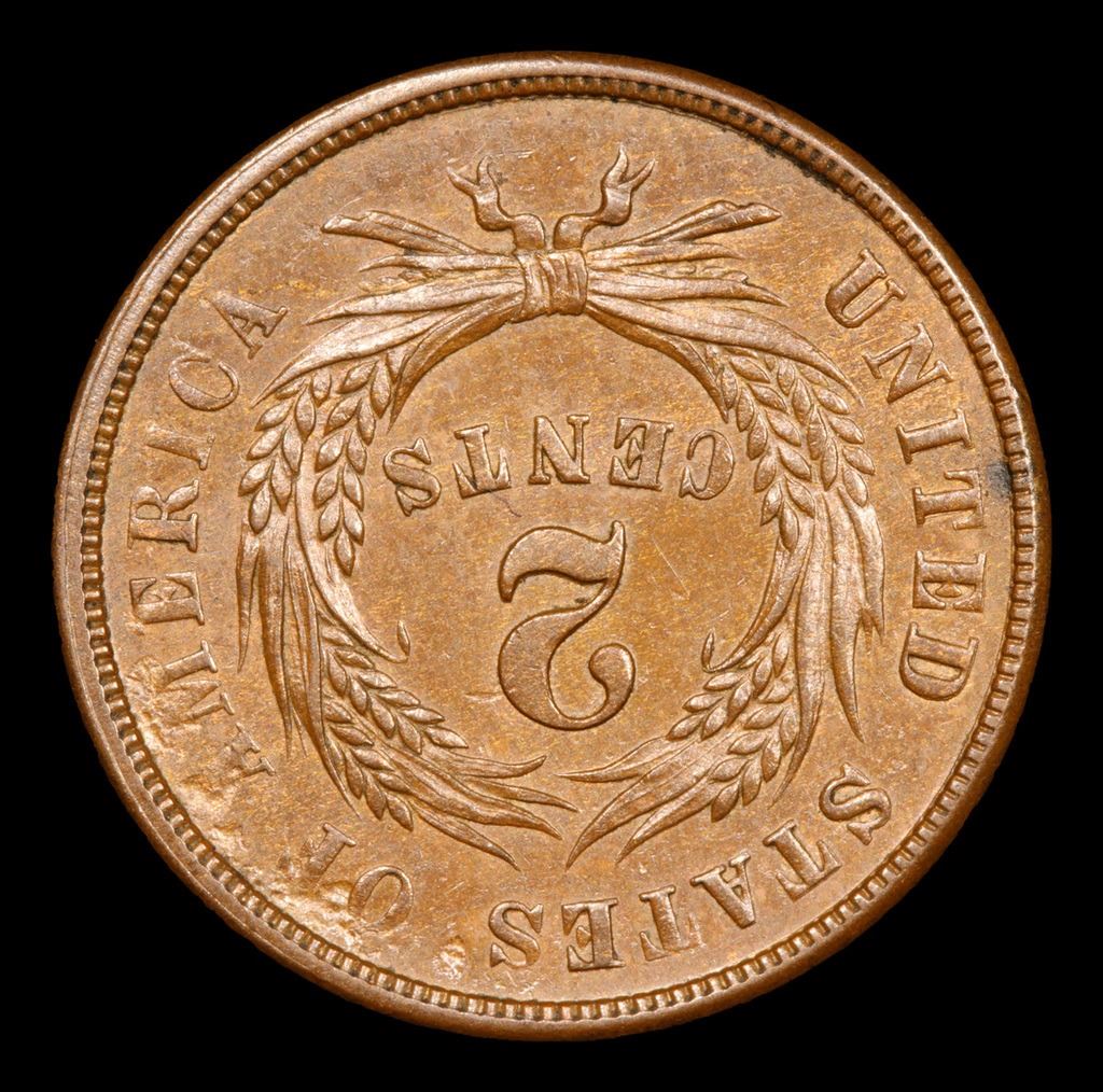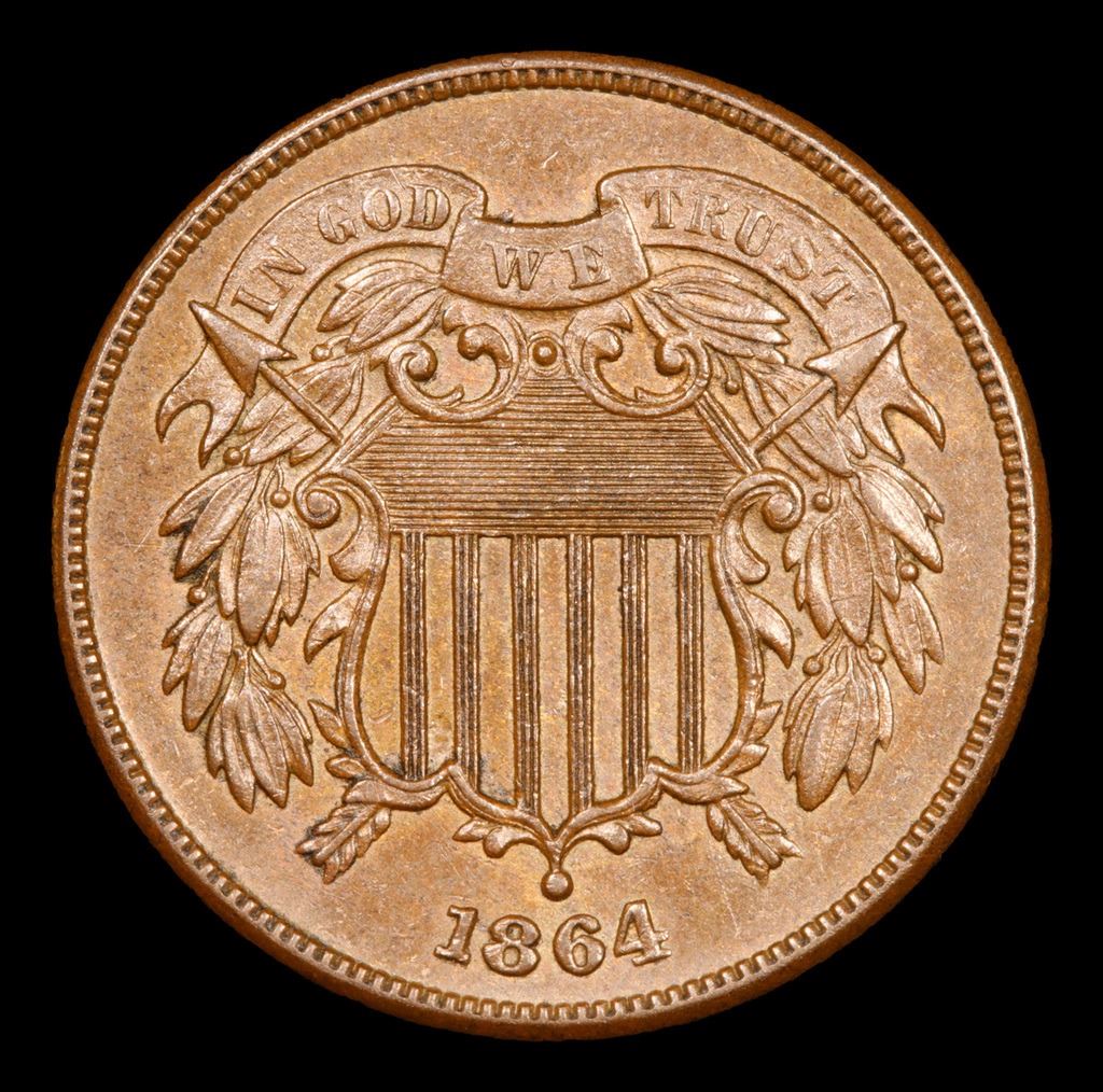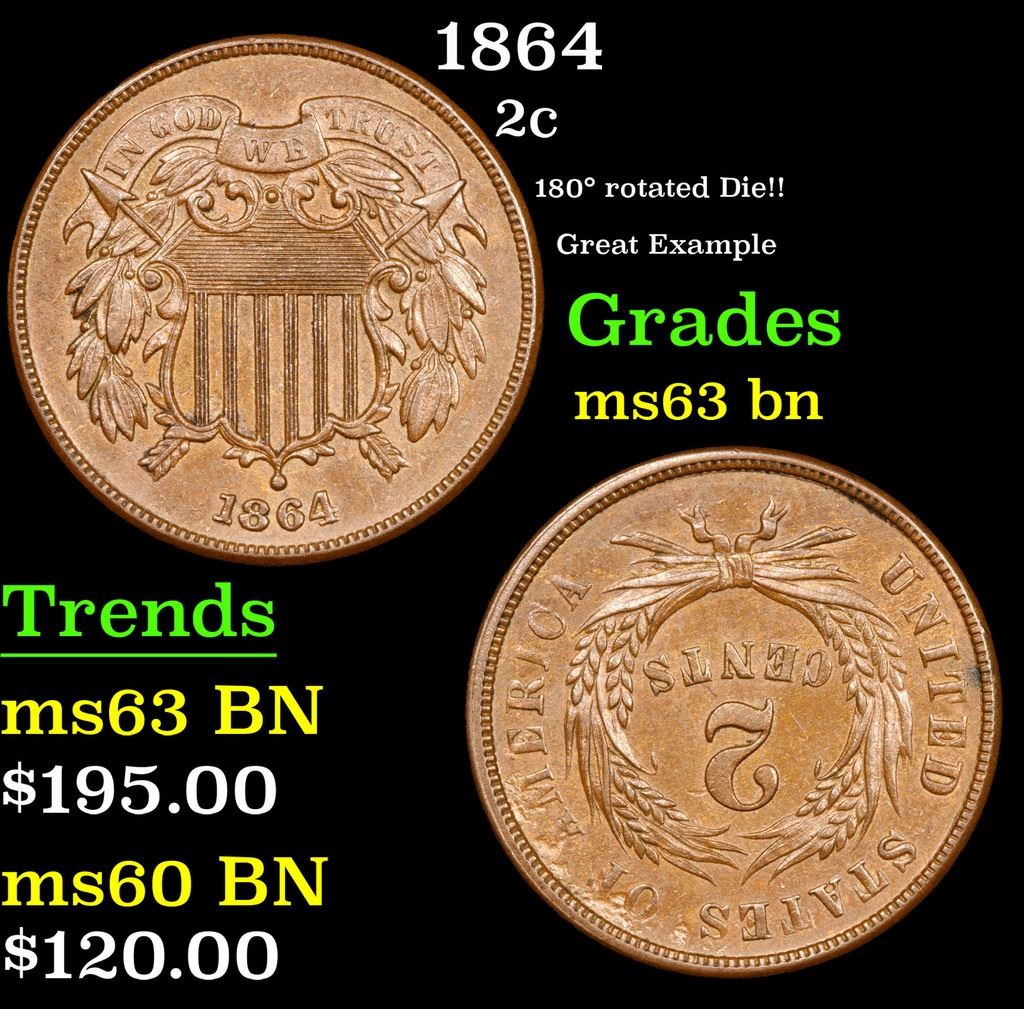 1864 180� rotated Die!! Great Example Two Cent Piece 2c Grades Select Unc BN.