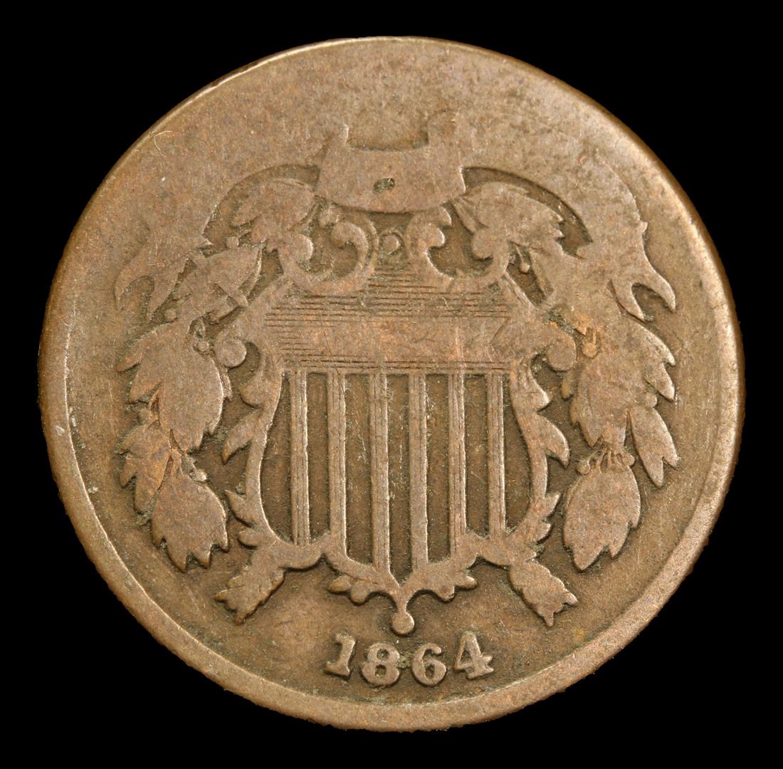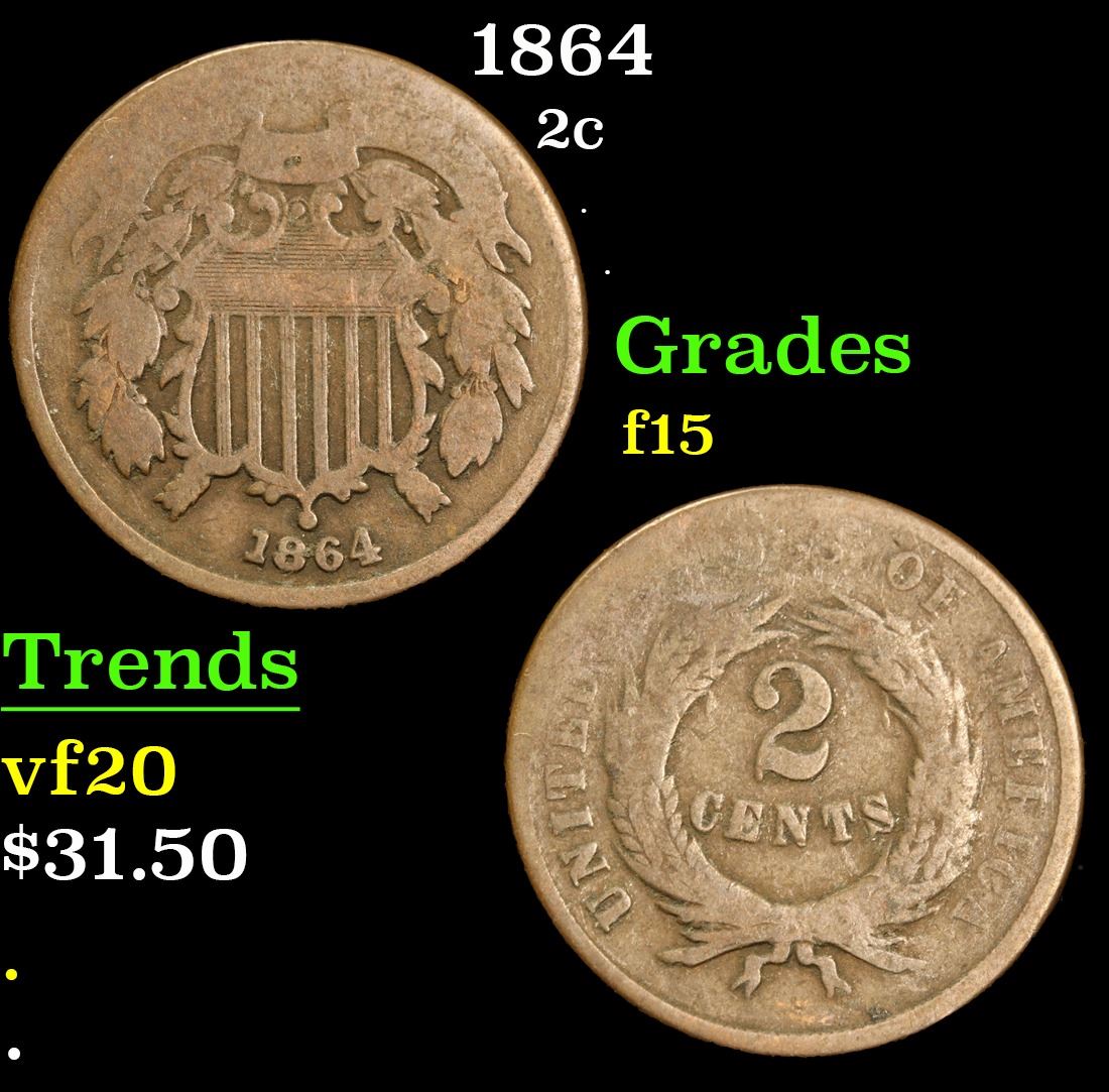 1864 . . Two Cent Piece 2c Grades f+.