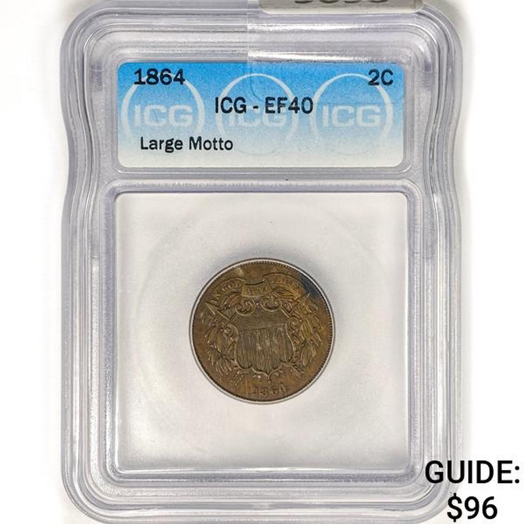 1864 Two Cent Piece ICG EF40 Large Motto