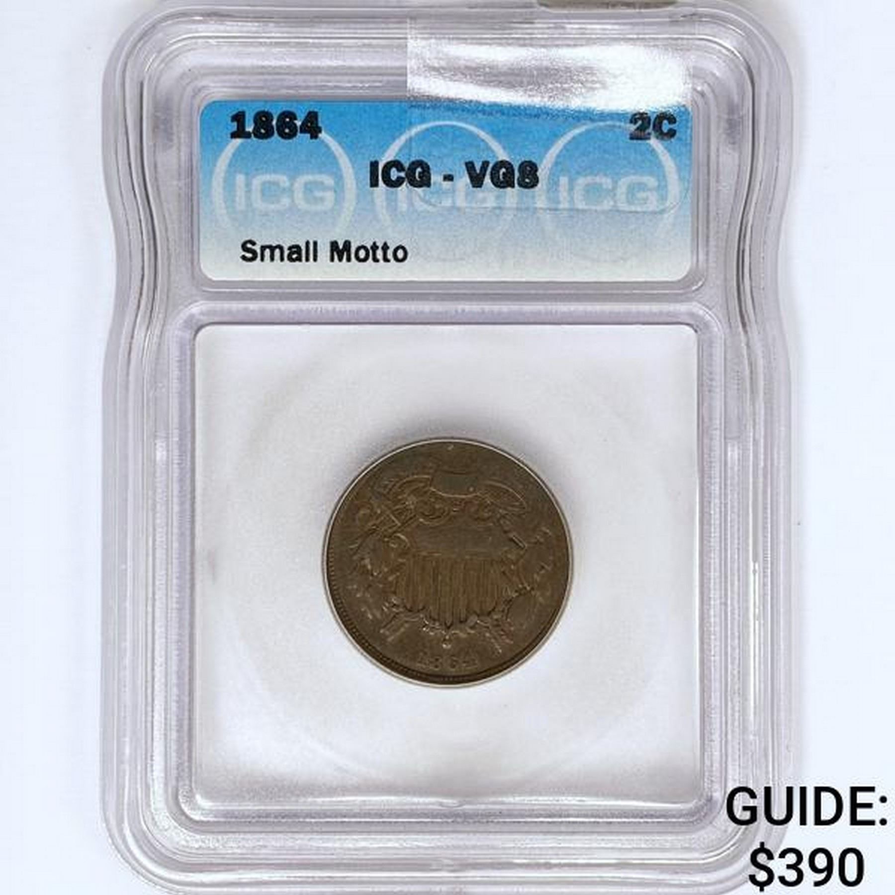 1864 Two Cent Piece ICG VG8 Sm Motto