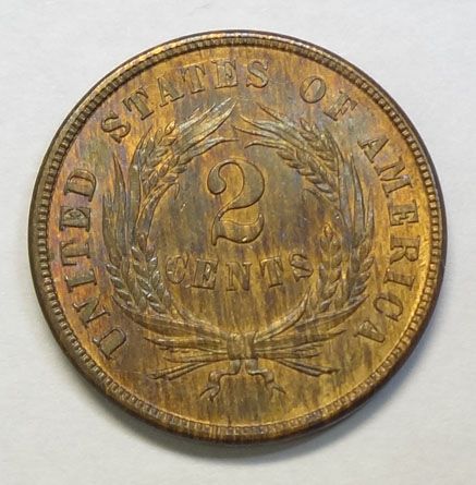1864 Two Cent Piece, Large Motto, ChBU 65-RB, Well struck, pop CW date